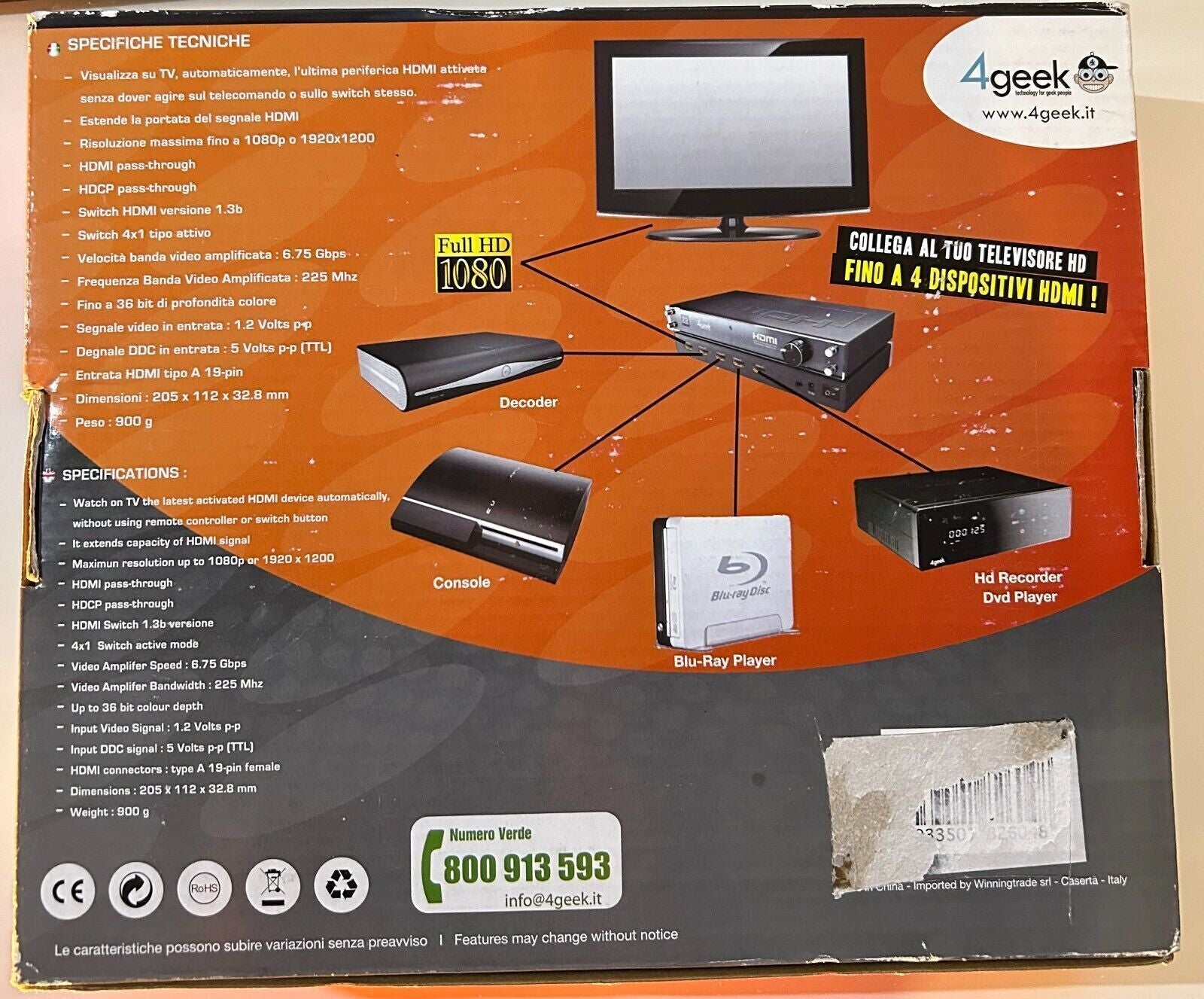 4geek Switchy Auto 4x1 Professional HDMI Switch Autoswitch intelligente Full HD