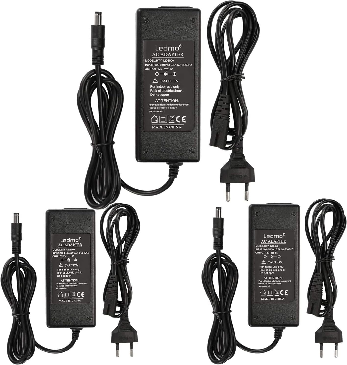 LEDMO 3 Pezzi Alimentatore 12V 5A Trasformatore 60W, Alimentatore 12v 5a Per Spina di Alimentazione 12V Per Notebook, Striscia LED, Schermo TFT-LCD, Radio, NAS, HD Esterno, Router, Hub, Switch, Ecc. [Classe di efficienza energetica E]