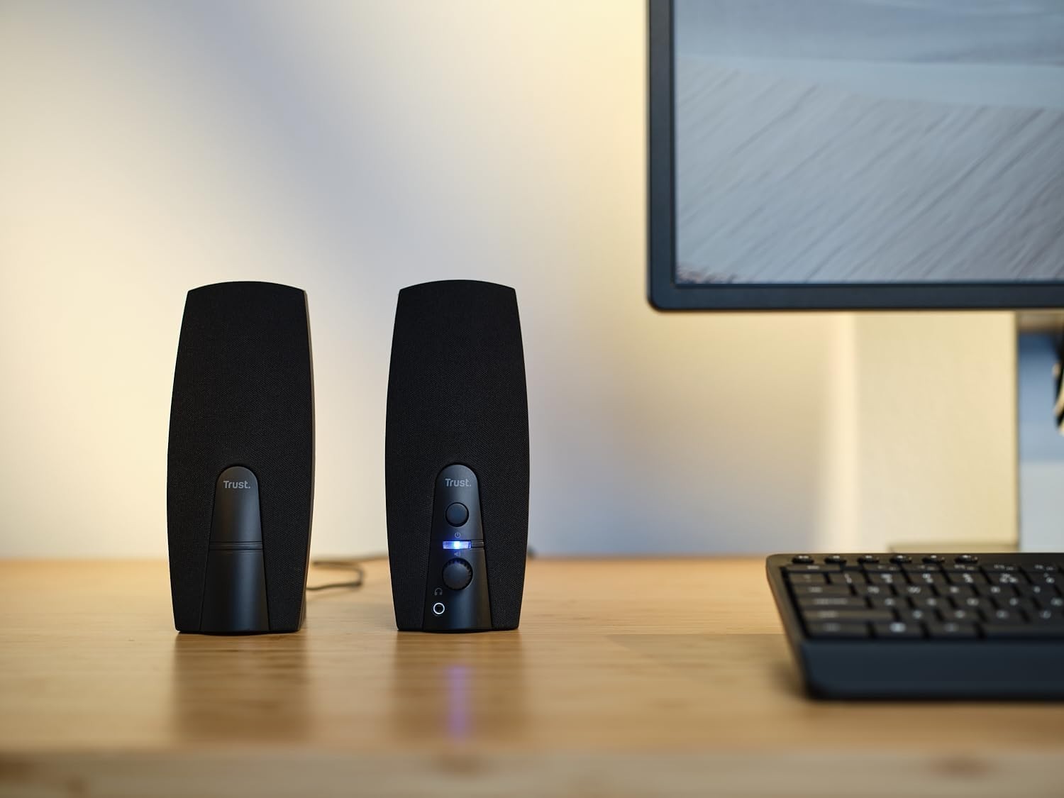 Altoparlanti per PC Trust Almo, set di altoparlanti stereo USB 2.0, 10 W, jack Aux da 3,5 mm, connettore per cuffie, altoparlante da tavolo, altoparlante per computer, portatile, nero-