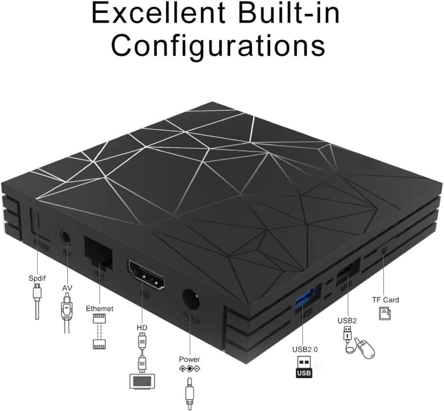2 GB RAM + 16 GB ROM: T9 Android TV BOX dotato di 2 GB di RAM e 16 GB di ROM, che offre spazio e libertà sufficienti per scaricare e installare le tue app preferite, navigare su siti Web, giocare e guardare film in modo più fluido. Puoi anche espandere la memoria tramite lo slot per schede TF, senza buffering o guasti e non preoccuparti di rimanere senza spazio.