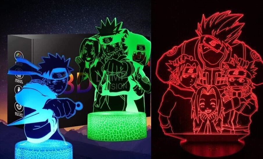 Anime 3D Luce notturna, adatto per la decorazione della camera dei bambini, 3 motivi, 16 colori mutevoli con telecomando e Touch, Regali per ragazzi e ragazze