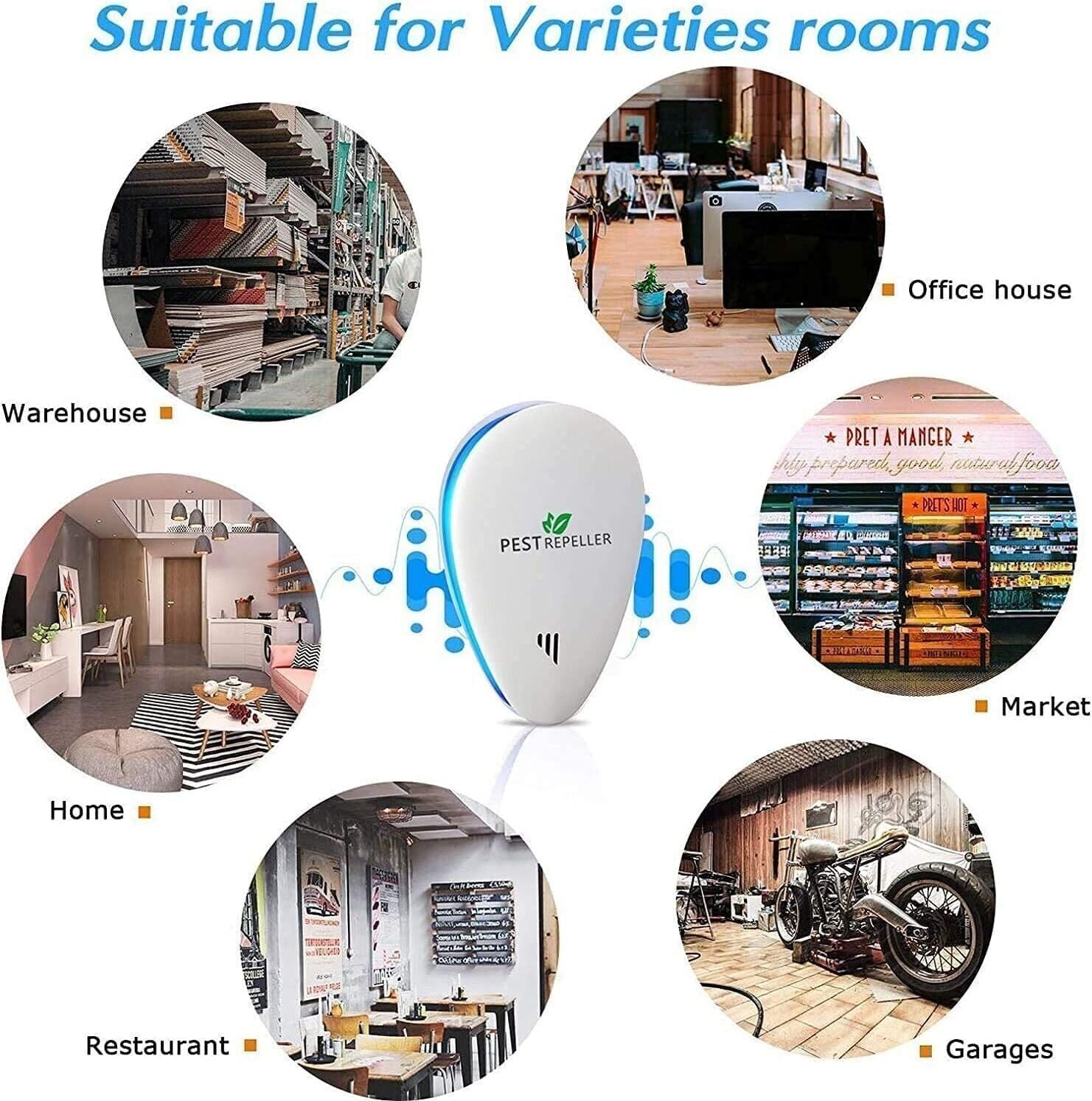 AMPIA AREA DI COPERTURA E FACILITÀ DI UTILIZZO: Il controllo dei parassiti ad ultrasuoni è efficace per un'area fino a 100m quadrati. Basta collegare il repeller e accendere l'alimentazione. Ampia area di utilizzo, usa questo repellente per i parassiti nella tua casa, magazzino, ufficio, giardino, hotel, ristorante, bar ecc. E dimentica i parassiti.