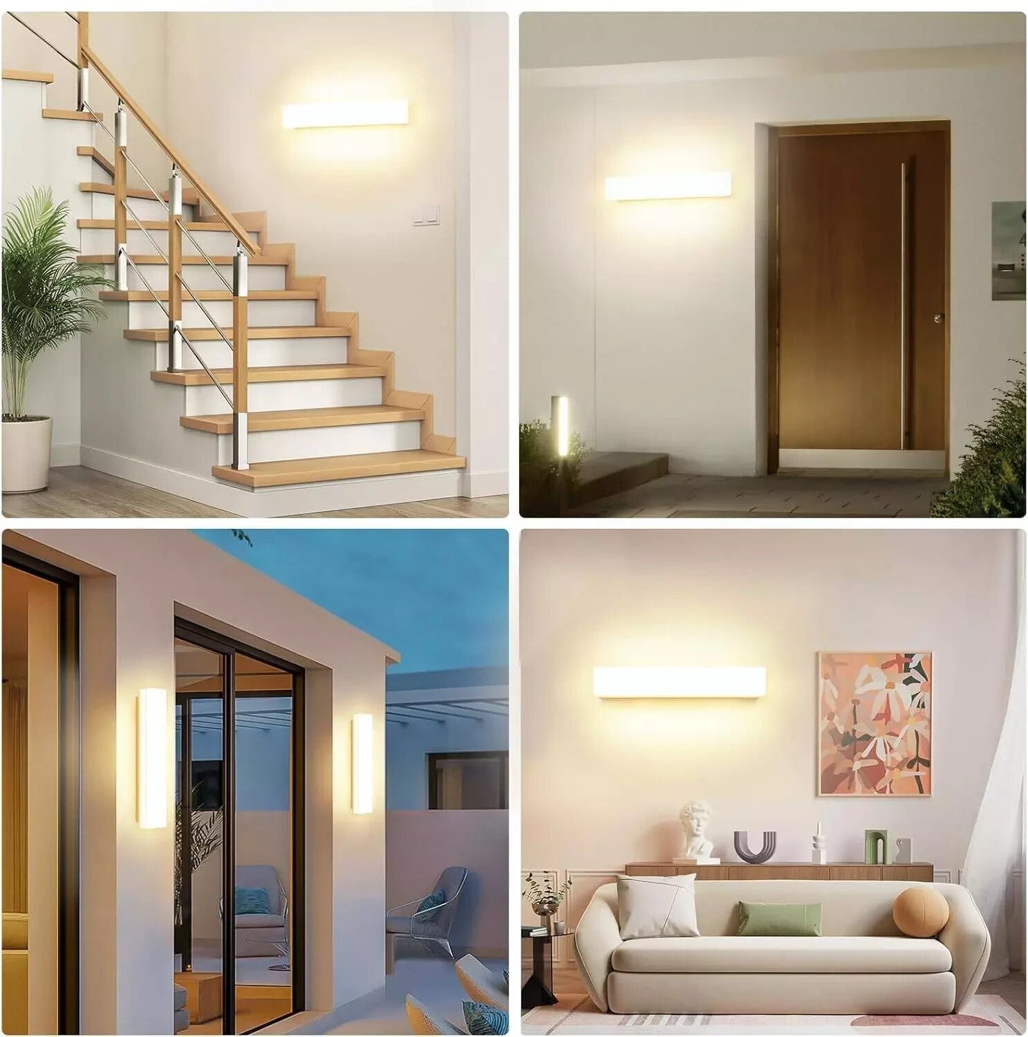 Applique da Parete LEDMO Interno 2 Pezzi da Interno esterno 10W 3000K Bianco Caldo 30cm Bianco Lampada da Parete per salotti, scale, corridoi [Classe di efficienza energetica F]
