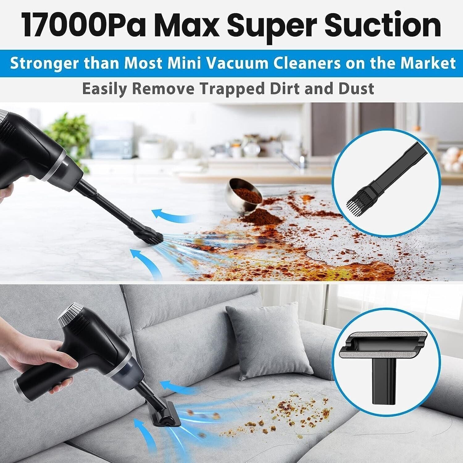 Potente e portatile: il nostro prodotto adotta un vero design senza fili, leggero. Aspirazione super potente da 17000 Pa paragonabile a un aspirapolvere a bastoncino. Con un forte flusso d'aria di 78000 giri/min, rimuove lo sporco e la polvere intrappolati. Questo versatile kit di pulizia portatile portatile, ideale per mantenere il tuo lavoro o la tua area di vita pulita e igienica. È il tuo miglior aiuto per la pulizia in casa, ufficio e auto.