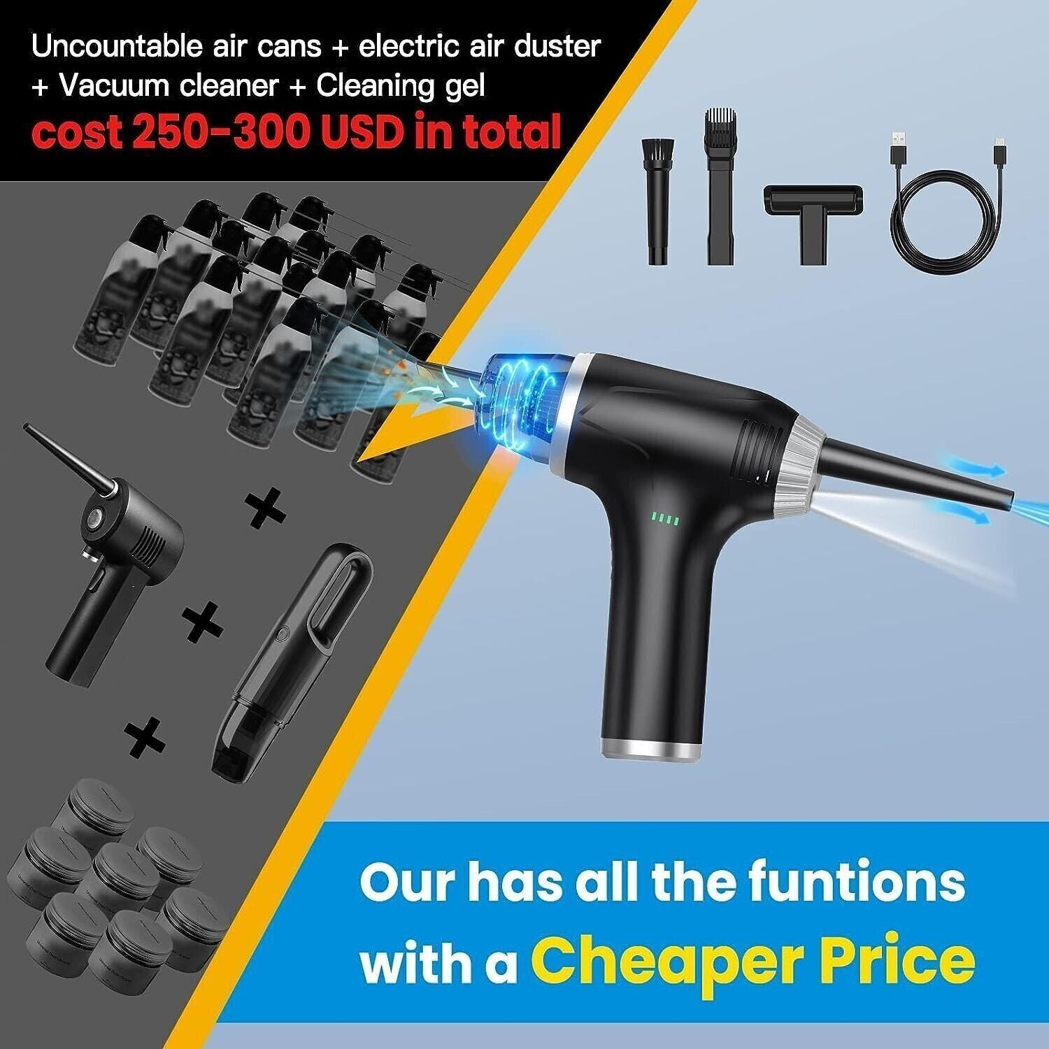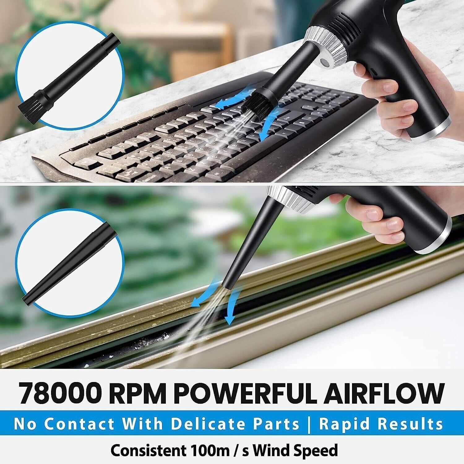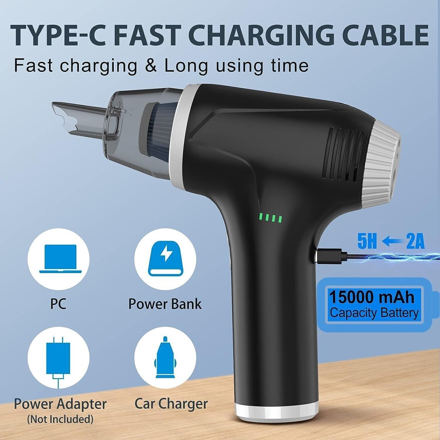 Aria Compressa Elettrico Rimuovi Polvere Senza Fili & Aspirapolvere 2 in 1, Batteria da 15000mAh Ricaricabile, 17Kpa Aspirazione, 78000RPM il Motore, Air Duster Pulizia Di Tastiera Ufficio PC Auto