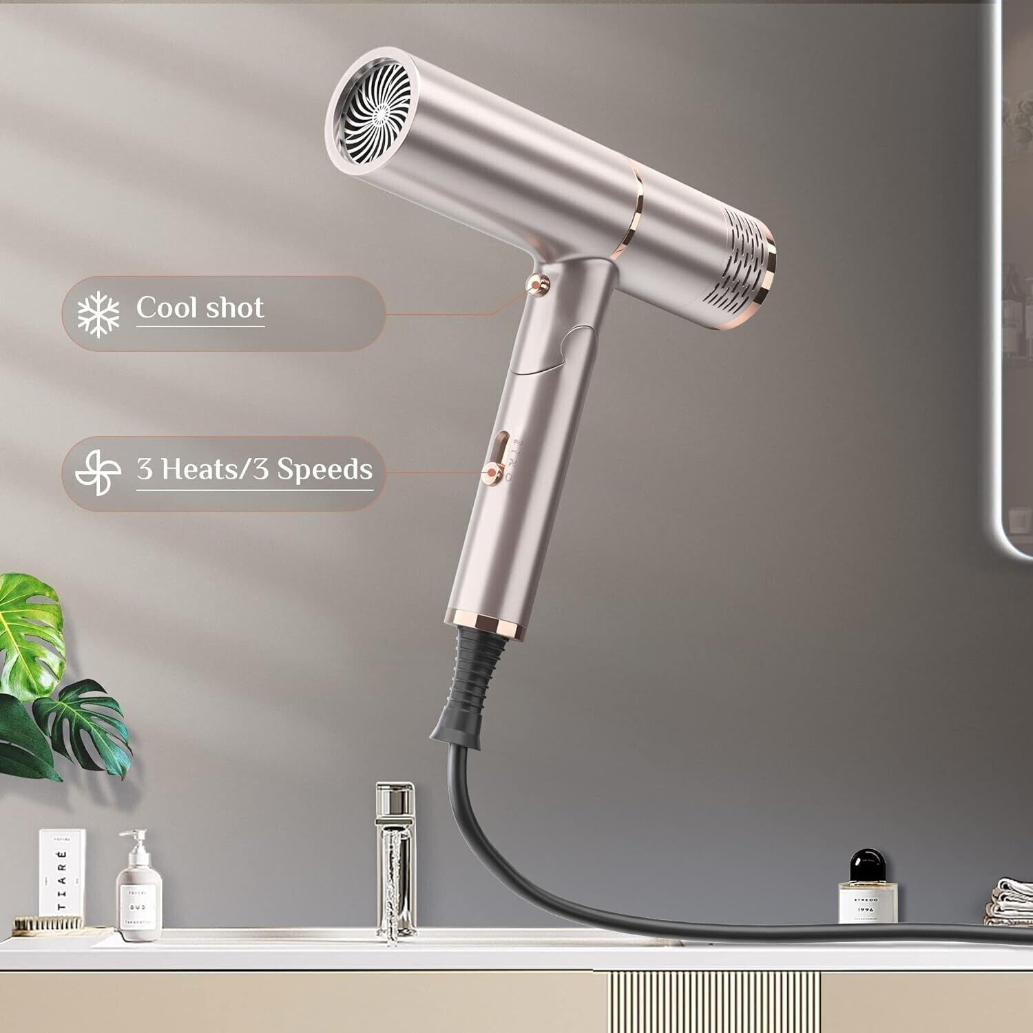 2 livelli di ventilazione separati e 3 livelli di riscaldamento: Il phon offre 2 impostazioni di temperatura e una bocchetta concentrata per una varietà di acconciature.