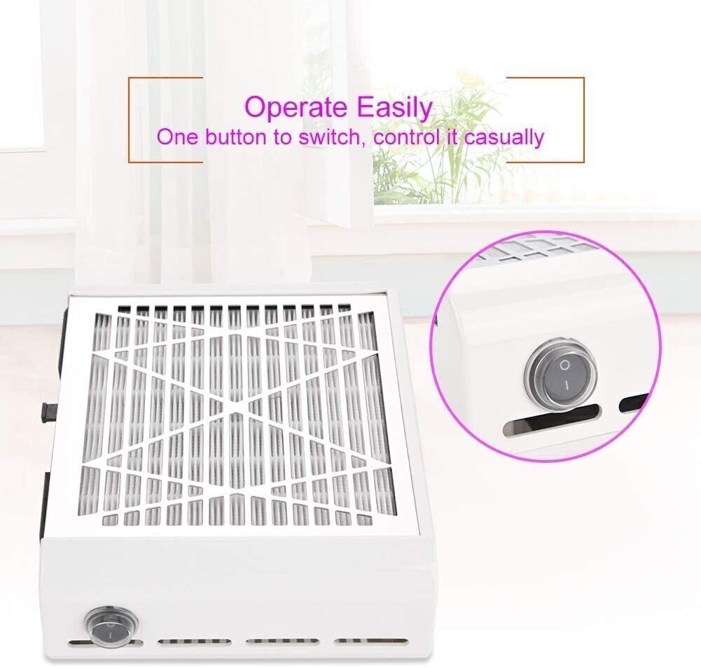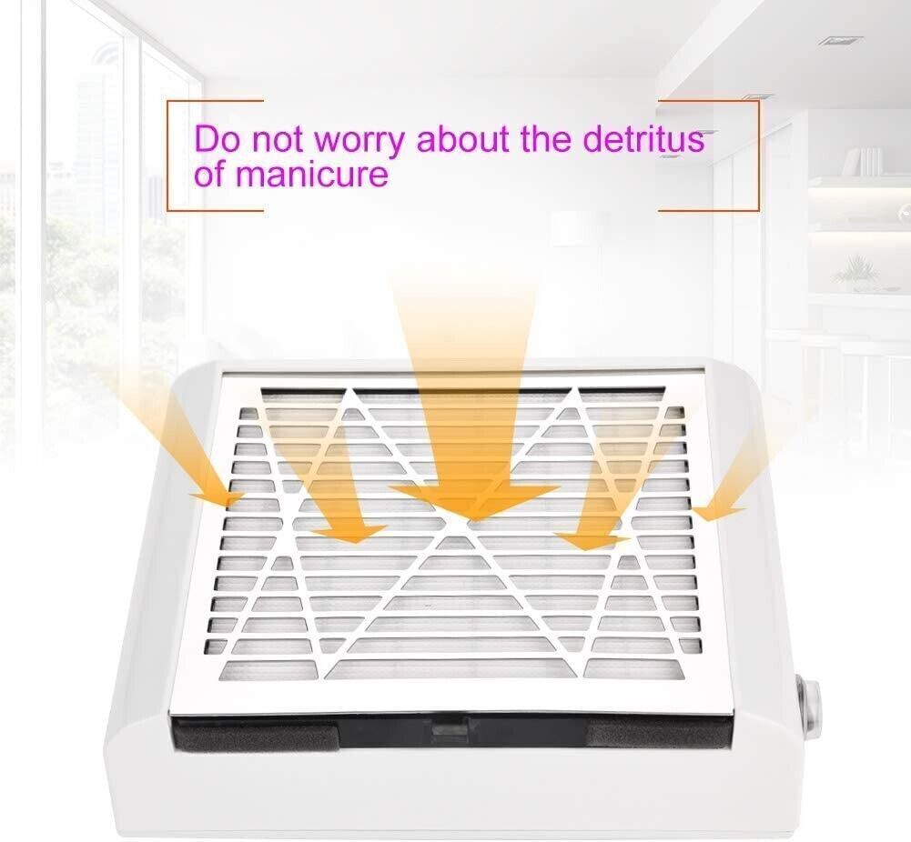 DESIGN AMICO DELL'UTENTE: dotato di interruttore ON / OFF, potente potenza della ventola, alta velocità, bassa rumorosità, per un ambiente di lavoro silenzioso. Ed è più facile da usare rispetto ad altri filtri per unghie. Hai solo bisogno di mettere la mano vicino al foro del ventilatore, e i frammenti dell'unghia sono facilmente assorbiti. Facile da usare.