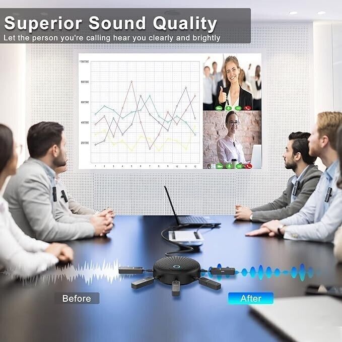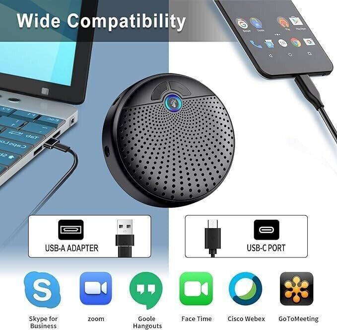Realizzato per le conferenze.Questo altoparlante per conferenze è perfetto per riunioni di piccole o medie dimensioni su una rete Internet utilizzando Skype/ GoToMeeting/ WebEx/ Hangouts/ Fuze/ VoIP/ Zoom e altri software. È possibile utilizzare il vivavoce anche per relazioni in tribunale, seminari, formazione a distanza, trattative commerciali, lezioni online, video chat, ecc.
