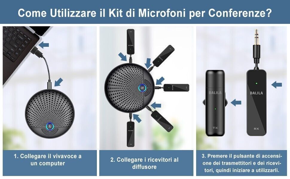 BALILA Altoparlante da Conferenza Wireless con 5 Trasmettitori + 5 Ricevitori