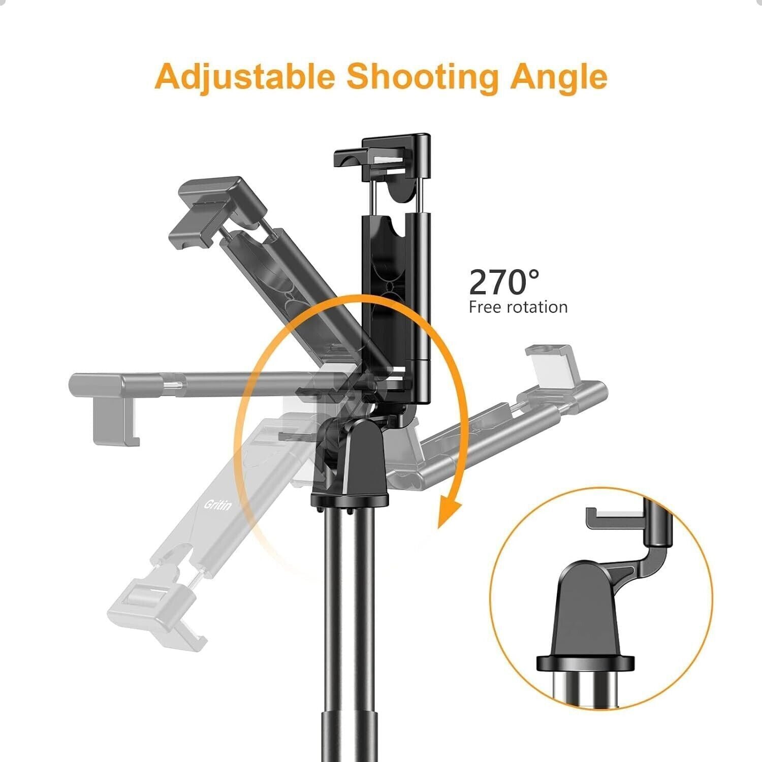 3 in 1 Bastone Selfie Treppiede: Il selfie stick è dotato di un telecomando per otturatore remoto Bluetooth, un treppiede portatile e una testa rotante di 270 ° con una manopola regolabile. Regola facilmente l'angolazione in base alle tue esigenze per scattare e registrare foto o video della festa.