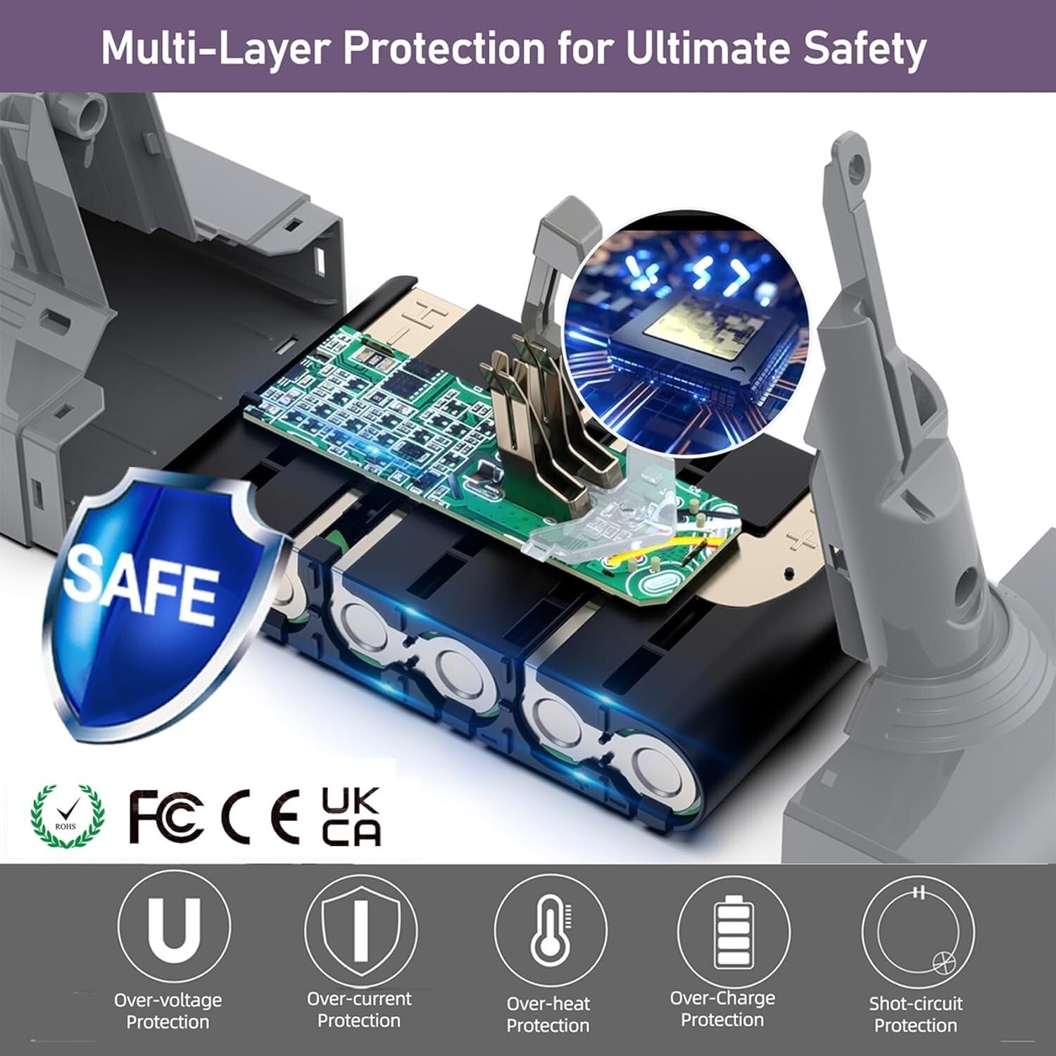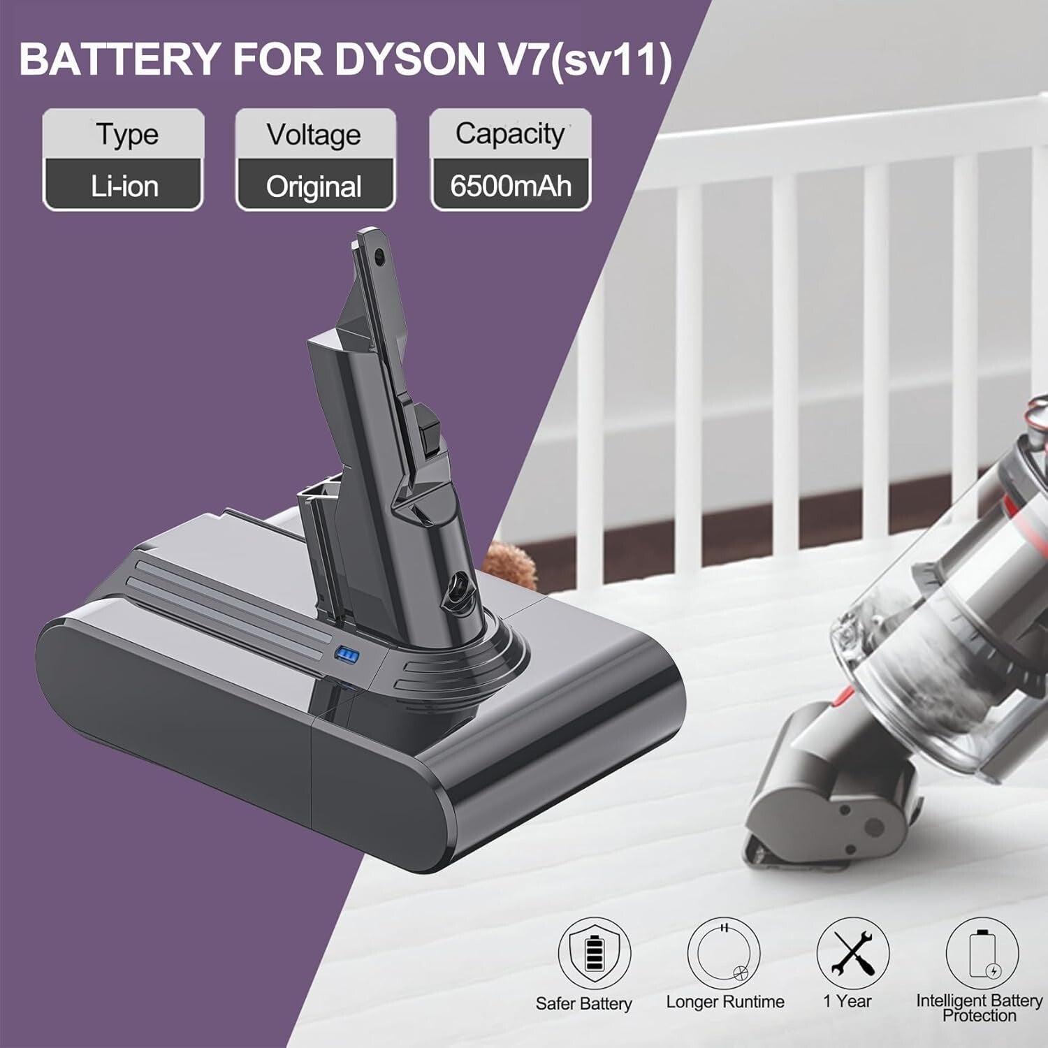 BATTERIA DI RICAMBIO PER DYSON V7 AD ALTE PRESTAZIONI. Capacità: 6500mAh. Batteria agli ioni di litio di alta qualità, ideale per gli aspirapolvere Dyson V7. Nessun effetto memoria, durata superiore alle batterie originali.