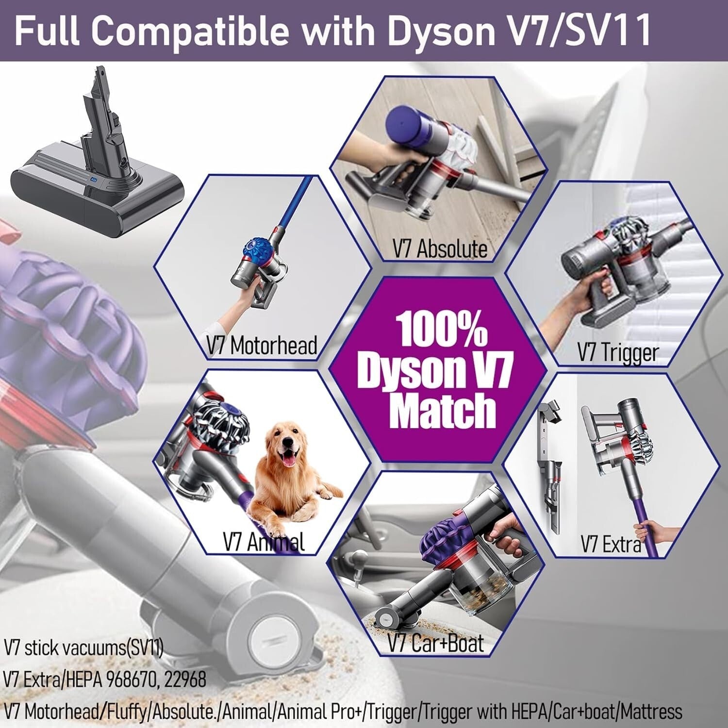 COMPATIBILE CON TUTTI I Dyson V7 Batteria di ricambio per tutti gli aspirapolvere a stelo Dyson V7 (SV11) inclusi V7 Motorhead, V7 Fluffy, V7 Animal, V7 Animal Pro+, V7 Trigger, V7 Trigger con HEPA, V7 Car+Boat, V7 Absolute. Compatibile con batterie 968670-02, 968670-12, 225403, TN5-EU, etc.
