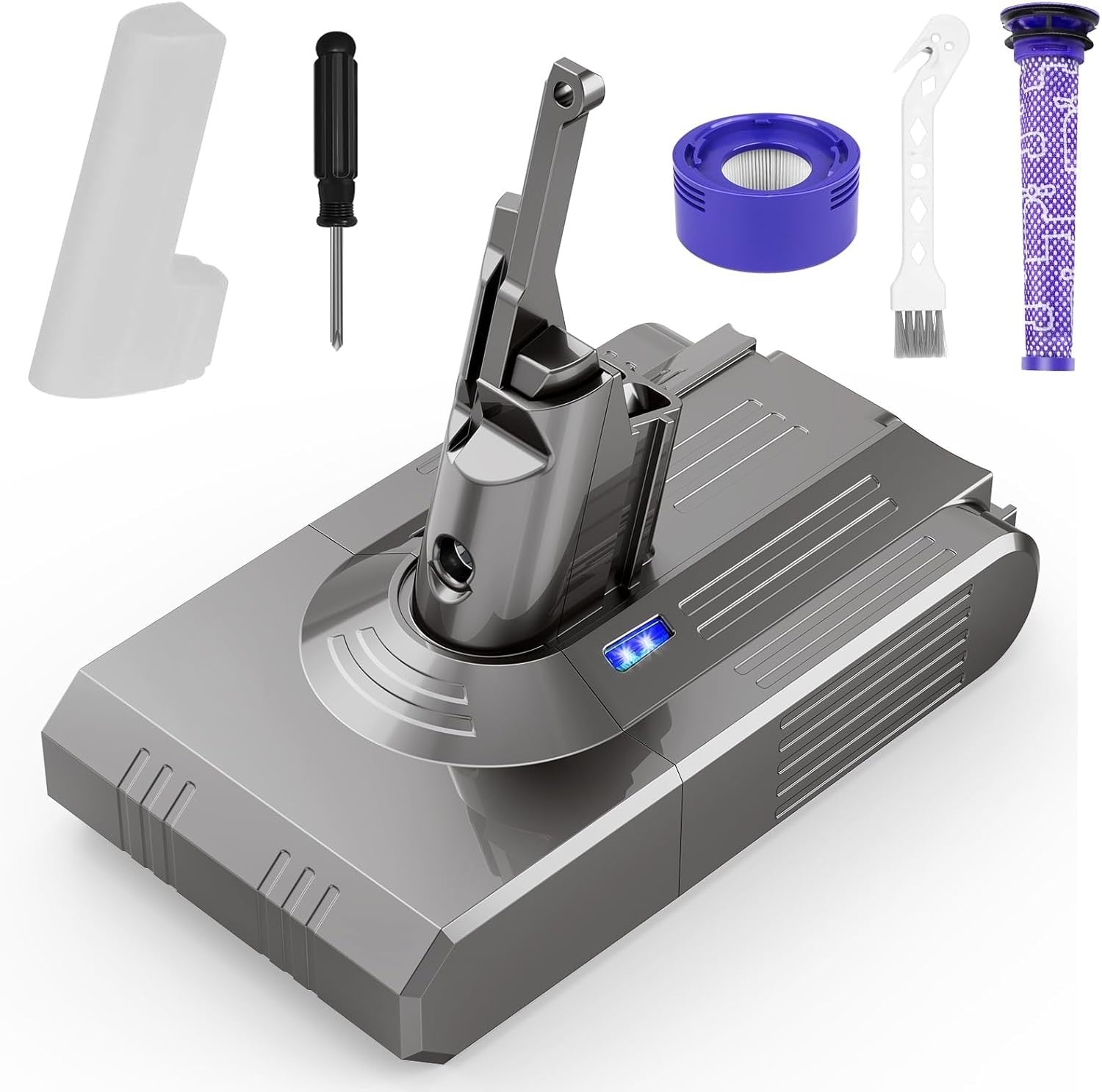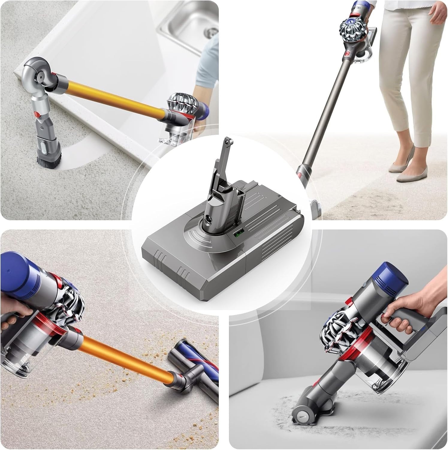 Eccellenti prestazioni della batteria: la batteria V8 per Dyson utilizza una cella agli ioni di litio aggiornata, 21,6 V 6000 mAh. La cella della batteria ad alta capacità rende il tuo aspirapolvere più potente e duraturo.