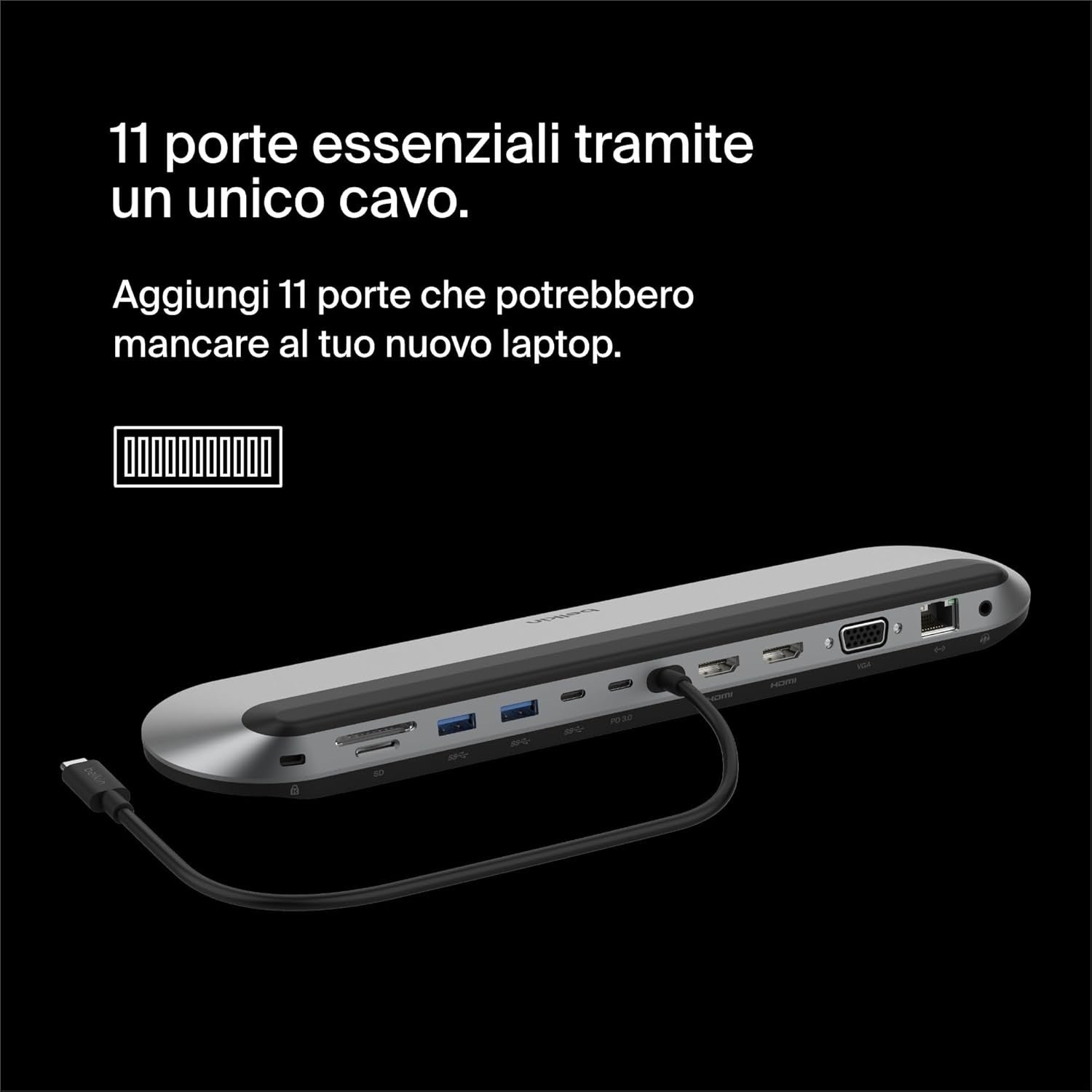 Belkin Connect Dock Pro USB-C 11 in 1 (supporta 3 monitor, Silicon Motion, Macbook, Windows, Chromebook, PD 100 W, trasferimento 10 Gbps, Ethernet 2,5 Gbps, nero).