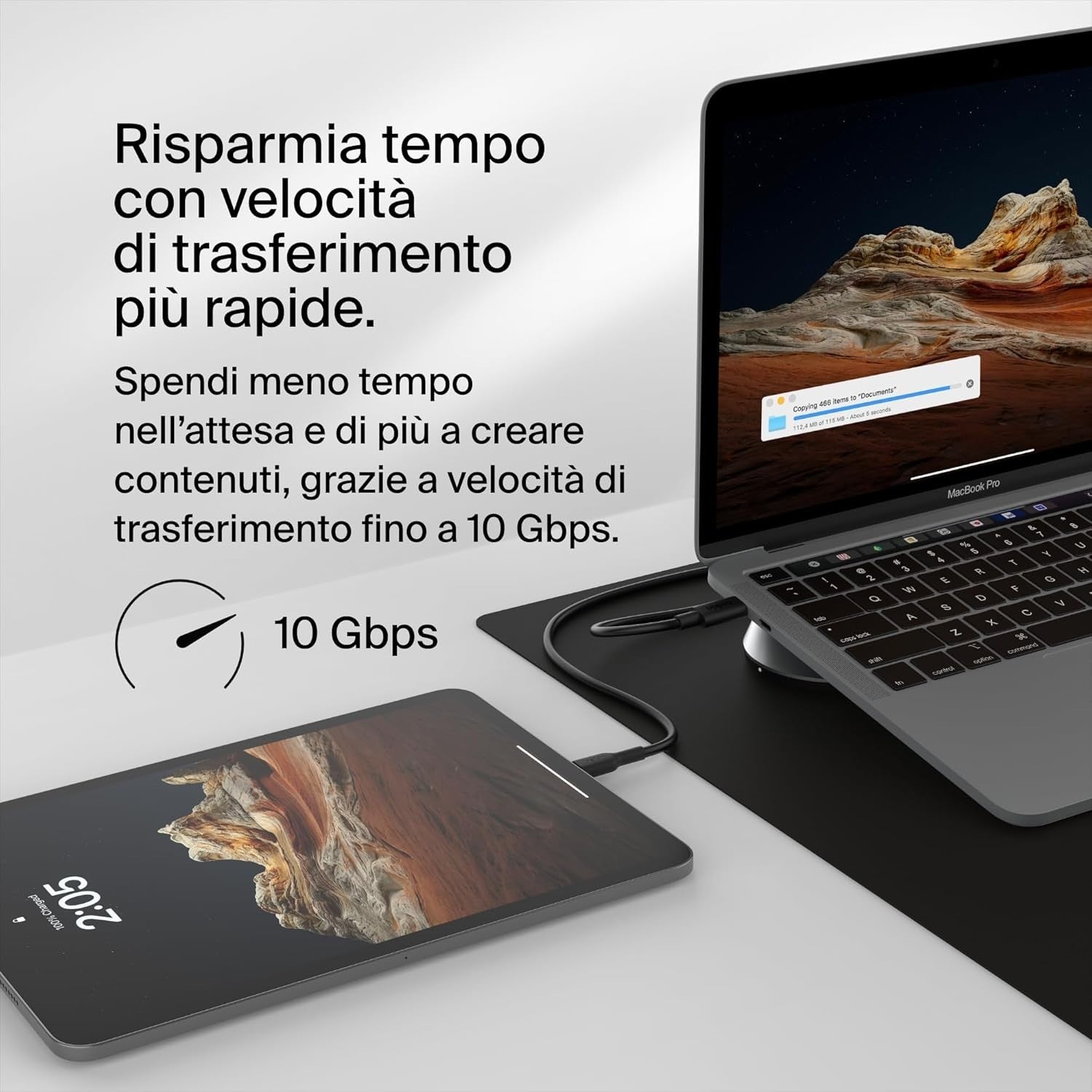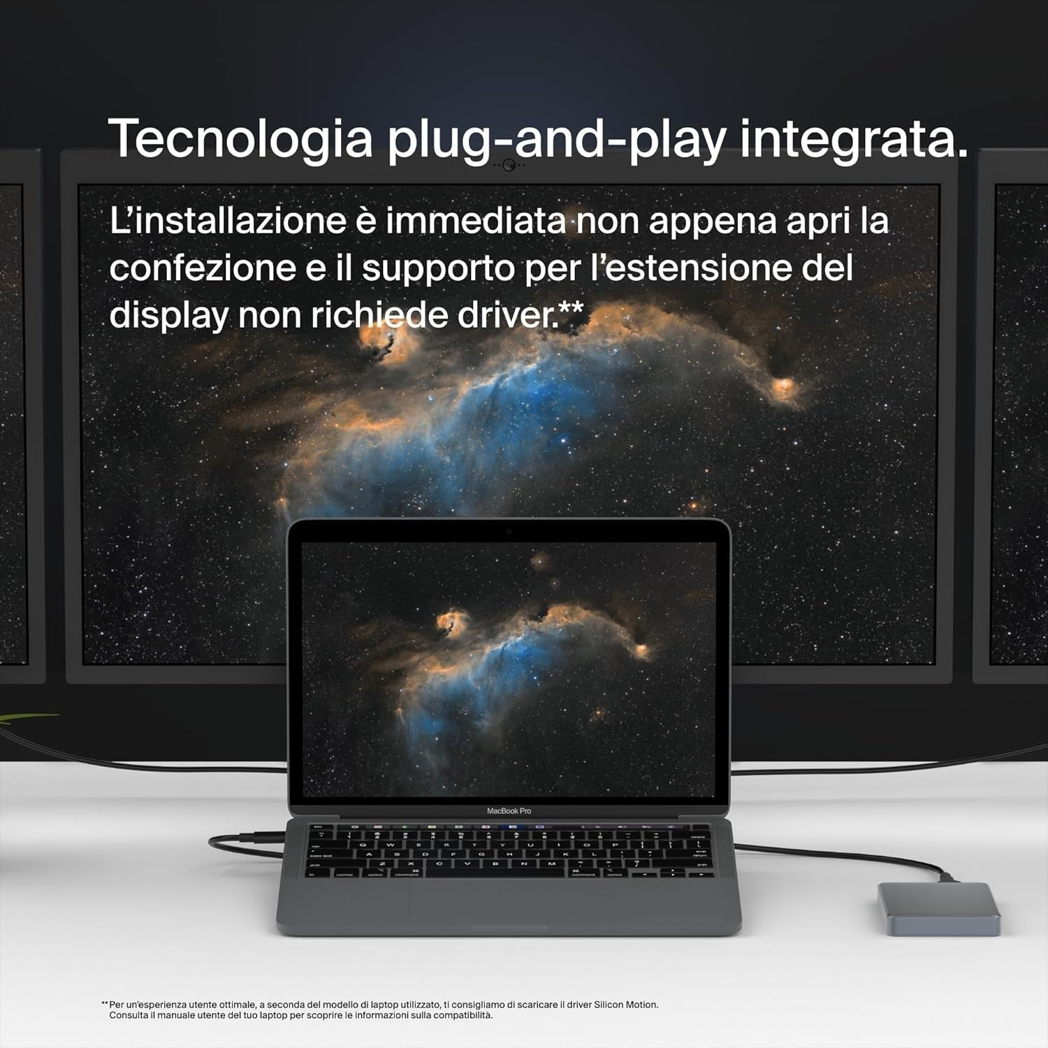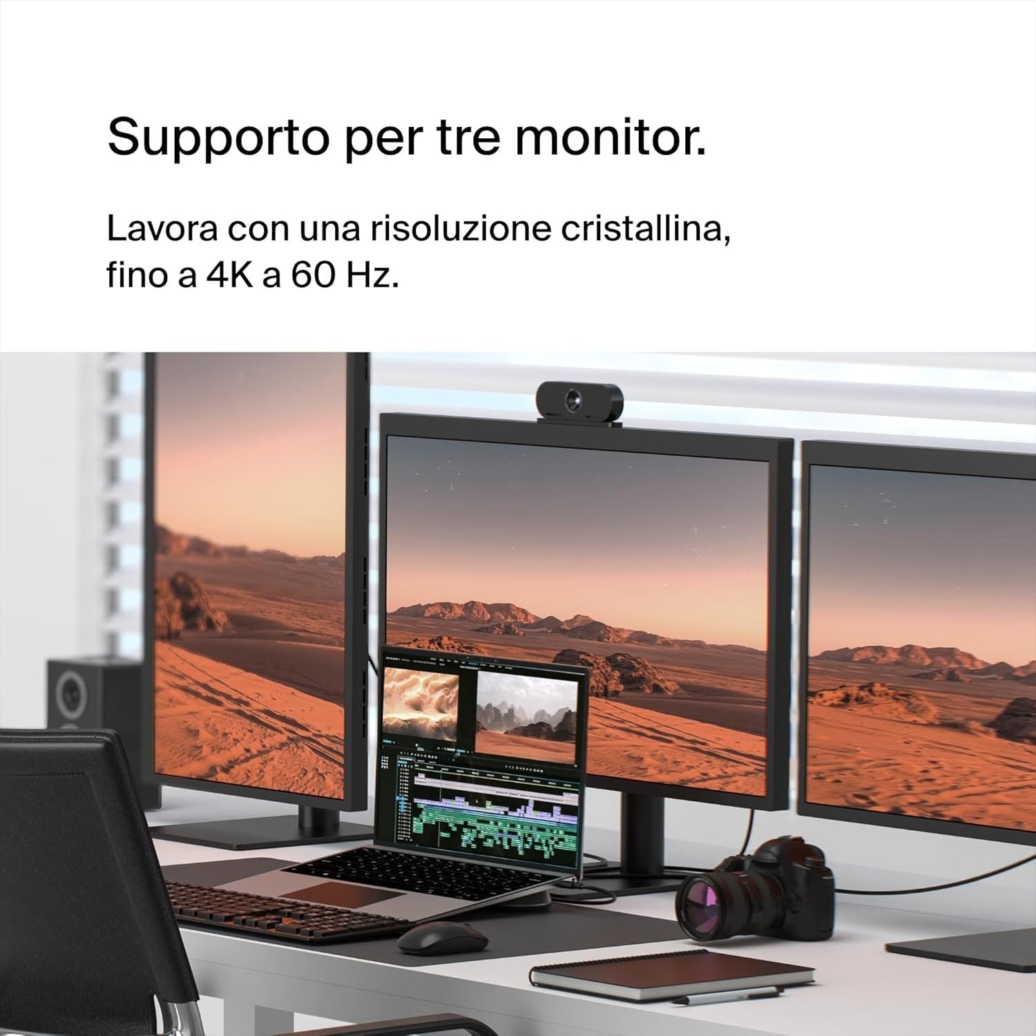TRASFERIMENTO DATI RAPIDO E SUPPORTO PER 3 MONITOR: Trasferisci dati fino a 10 Gbps. Puoi collegare fino a 3 monitor esterni con risoluzioni fino a 4K a 60 Hz su un monitor.