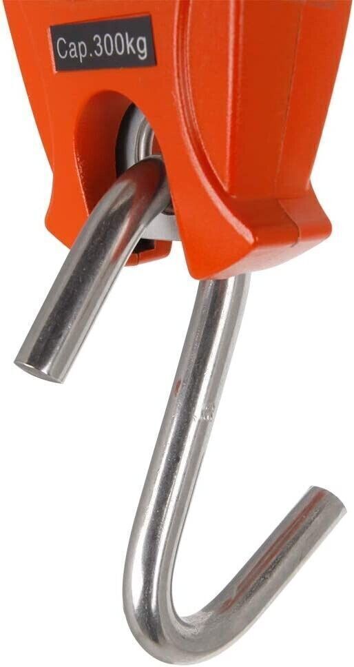 Gancio e moschettone in acciaio inox: Il corpo è realizzato in alluminio ad alta resistenza e il gancio di sospensione e il moschettone per il peso sono in acciaio inox.