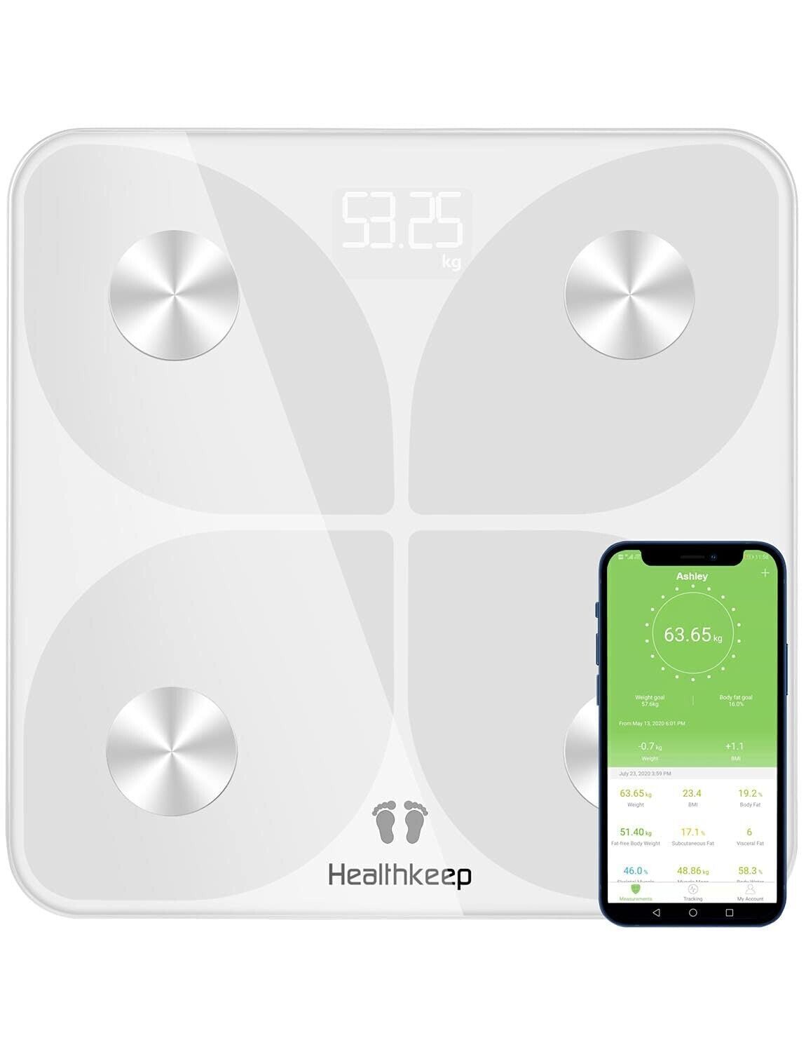 Bilancia Pesapersone Digitale con Bluetooth e App - Misura Peso Corporeo, BMI, Proteine, Massa Grassa, Muscolare e Ossea, Bianco