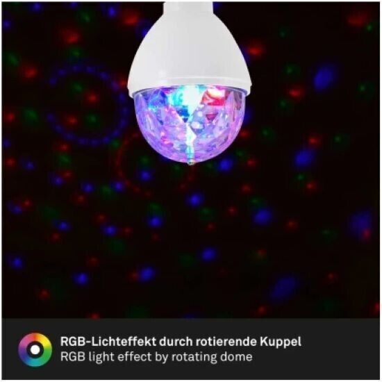 Lampadina LED cambiacolore, luci da discoteca, rotabile, 3 W, adatta a tutte le lampade con montaggio E27, Ø 7.3 x 12.9 cm (D x A) [Classe di efficienza energetica A]