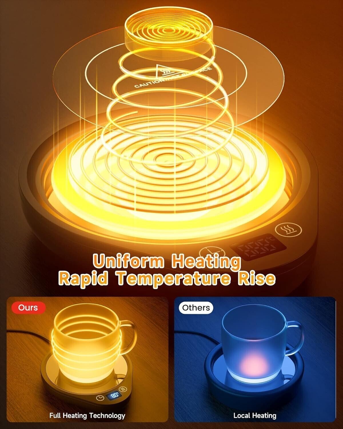3 impostazioni di temperatura: Il nostro scaldatazze è facile da usare, basta toccare leggermente il pulsante per accendere lo scaldabevande elettrico. Sono disponibili 3 impostazioni di temperatura: 130 ℉/150 ℉/176 ℉. Lo scaldatazze può mantenere le tue bevande a una temperatura calda ideale per mantenere il miglior gusto della bevanda.