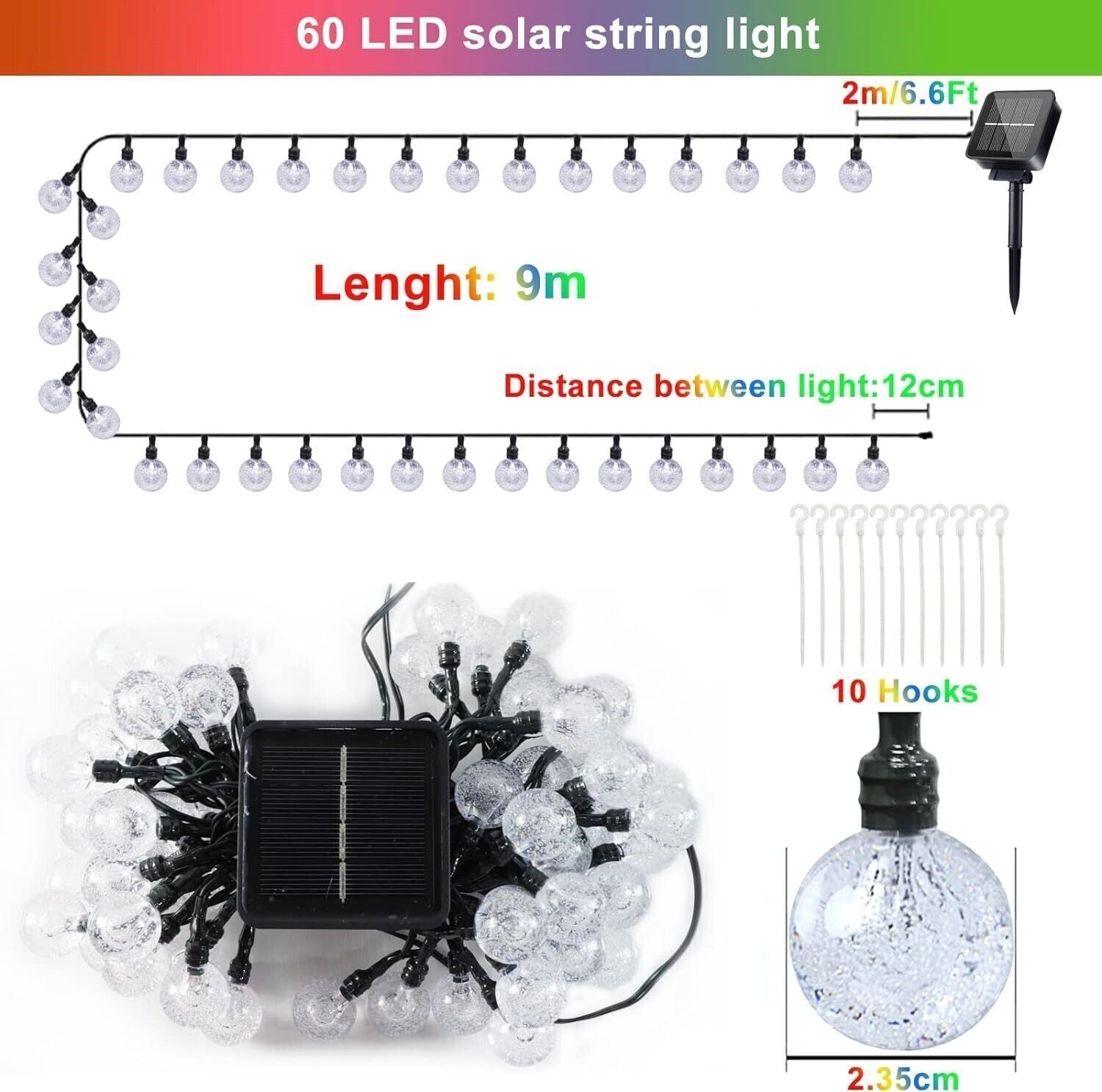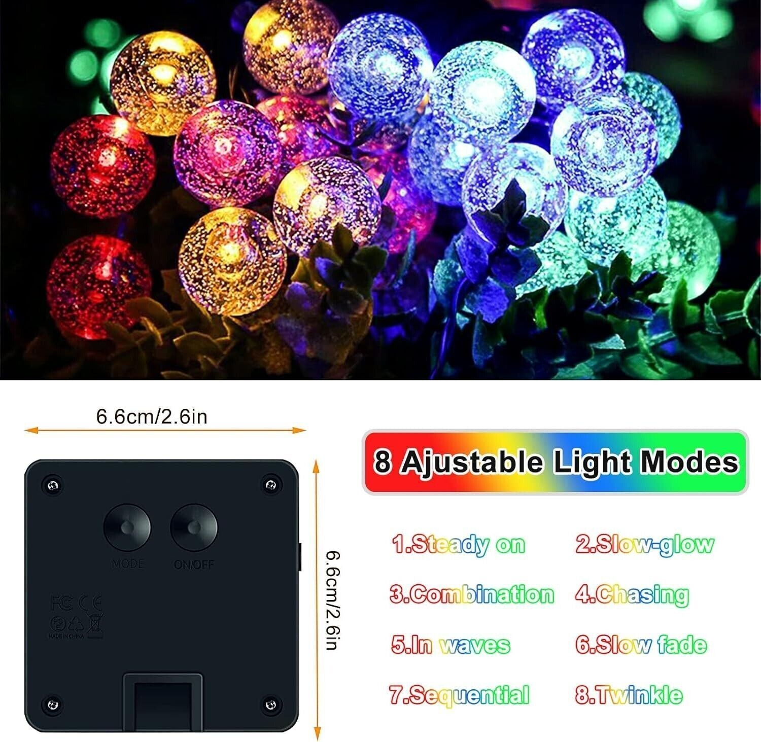 Catena Luminosa Esterno Solare, 9M 50 LED Luci Solari Esterno 8 Modalità, IP65 Impermeabile Cristallo Globo Lucine Decorative ad Energia Solare per Giardino, Patio, Cortile, Matrimonio, Festa