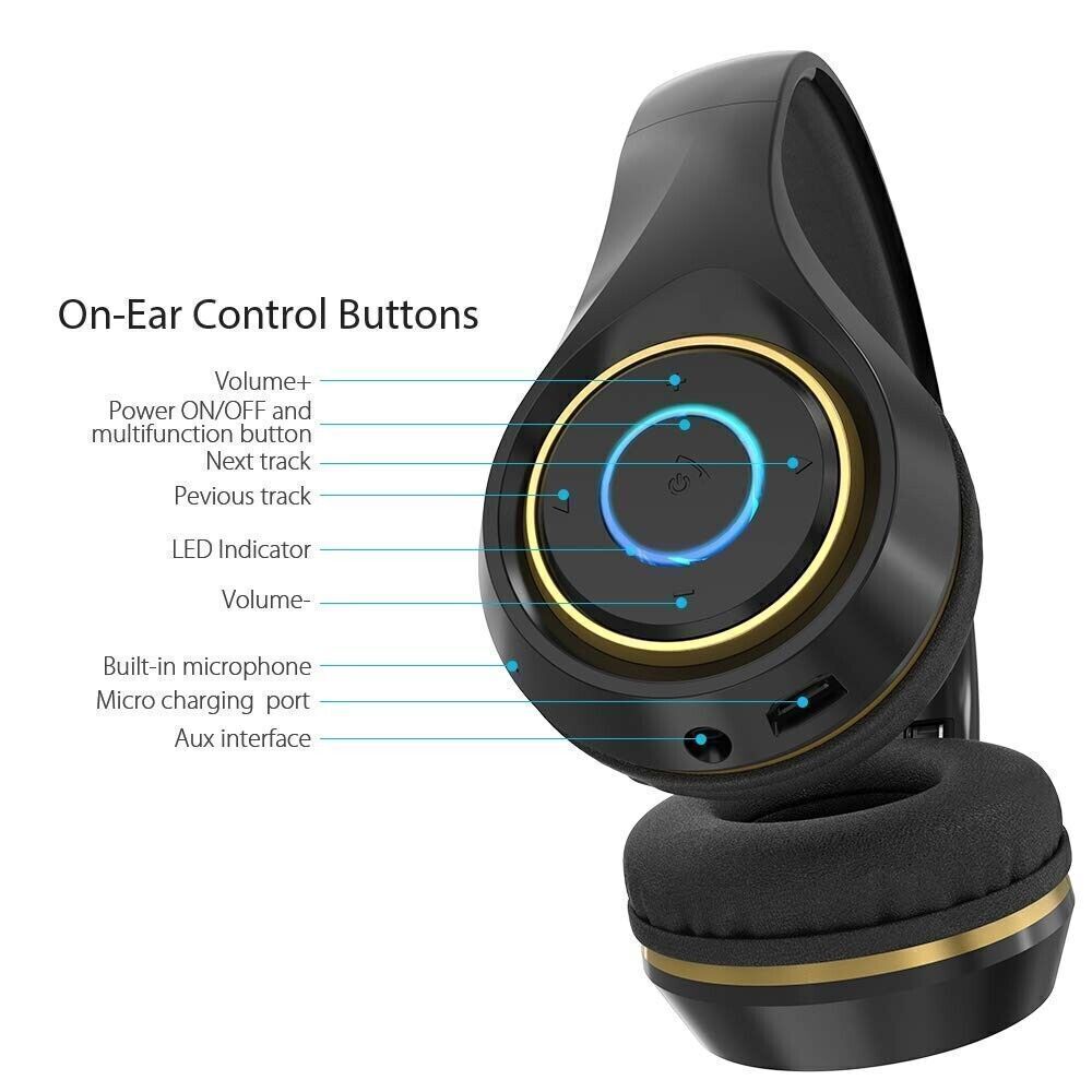 Chououkiu Cuffie Bluetooth, Cuffie wireless Cuffie pieghevoli a LED Auricolari stereo Hi-Fi con microfono, Cuffie cablate e wireless