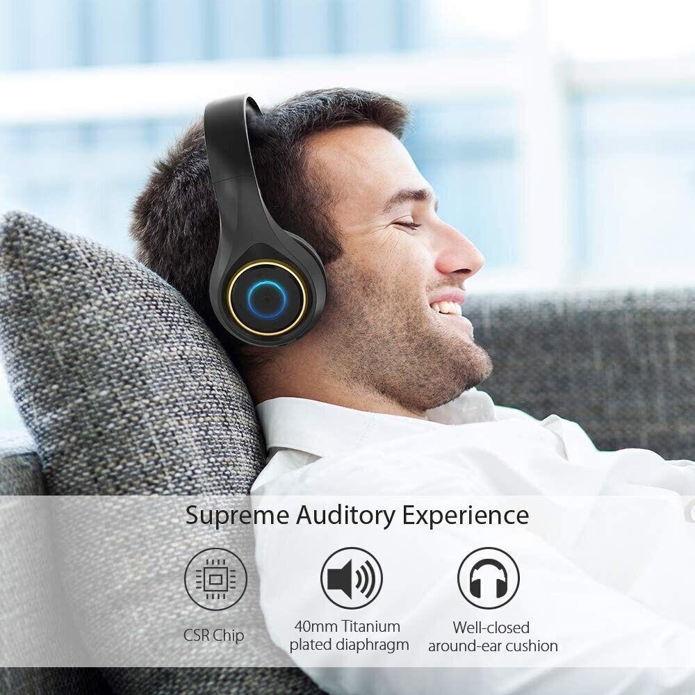 Chiamata in vivavoce e microfono integrato: le cuffie Bluetooth forniscono una connessione rapida e stabile con i tuoi dispositivi abilitati Bluetooth come telefoni cellulari, tablet, PC, TV entro 30 piedi, con un'alta qualità