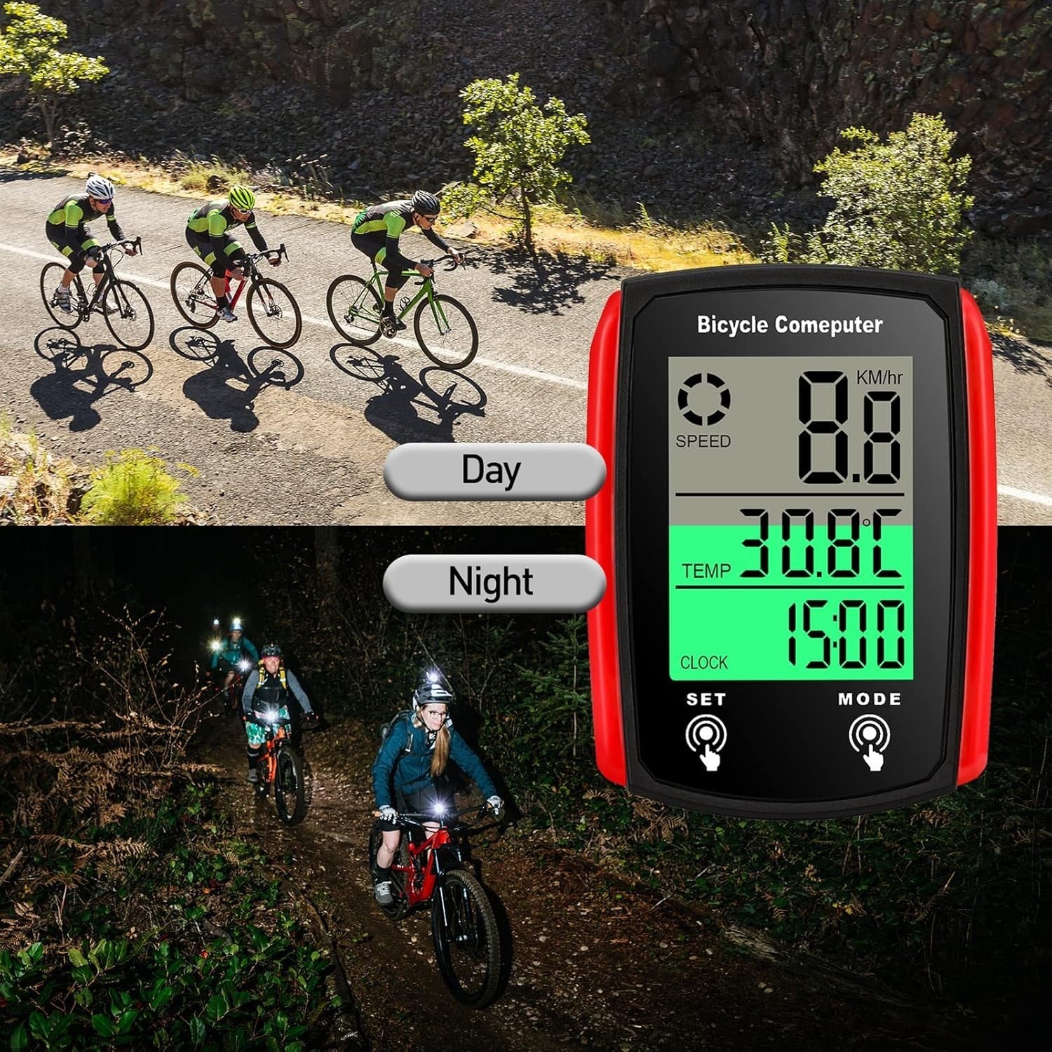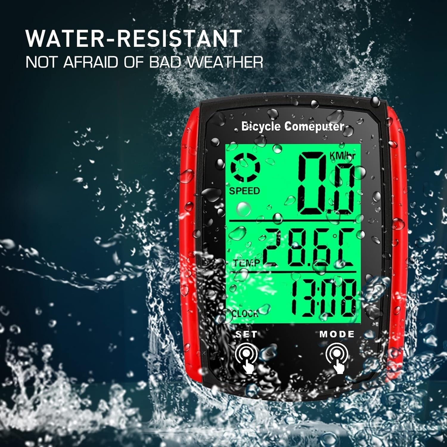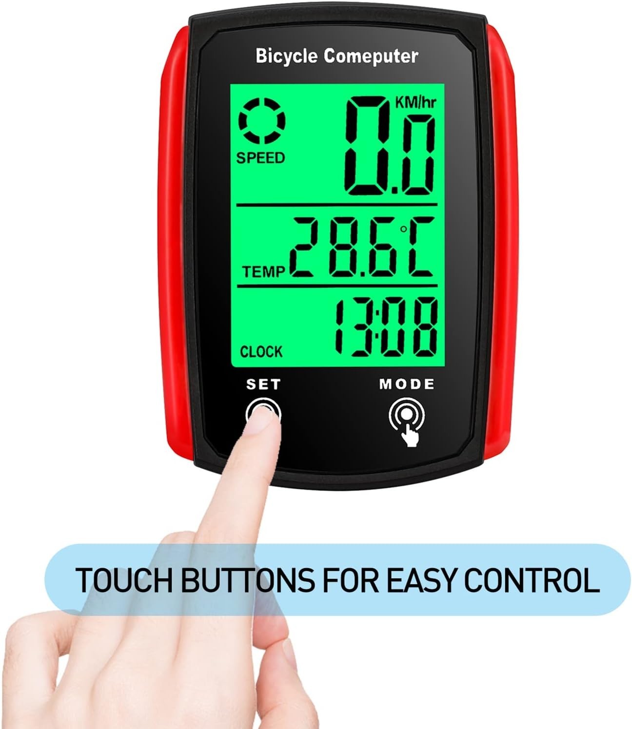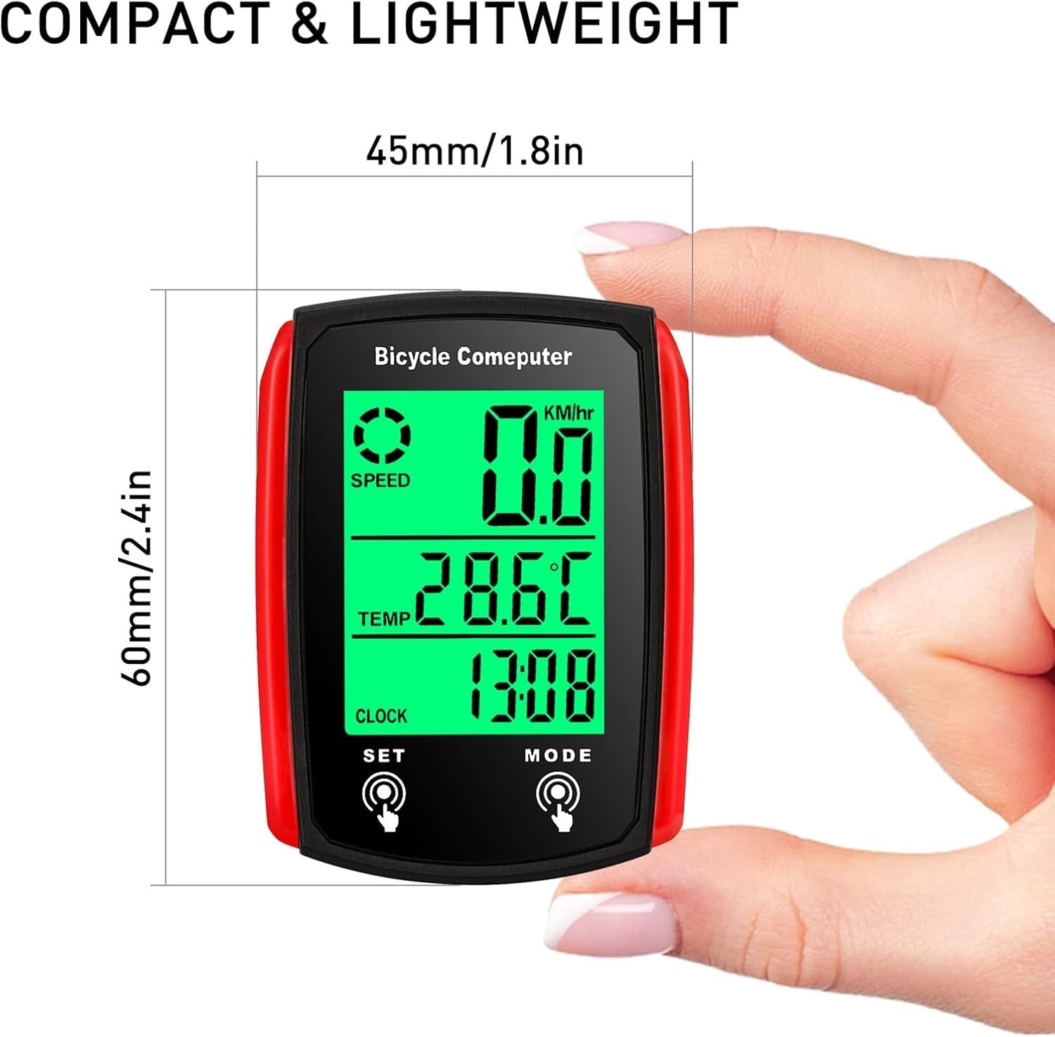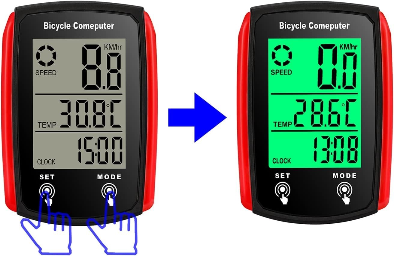 Incluso: 1 computer da bicicletta, 1 sensore cablato, 1 base in silicone antiscivolo, 1 magnete, 5 cravatte in nylon