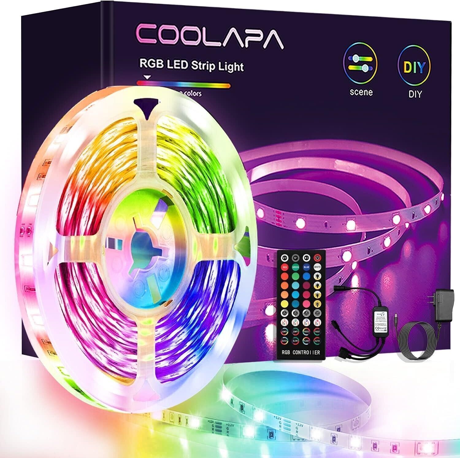 COOLAPA Striscia LED 6M, RGB Led Light Strip con 40 Tasti Telecomando IR, Musica