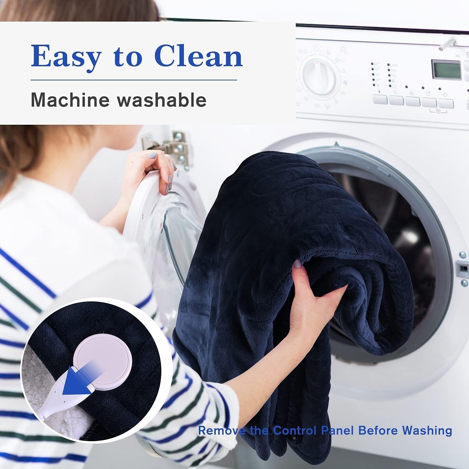 Facile da pulire e lavabile in lavatrice. Il connettore di alimentazione della coperta termica elettrica è a tenuta stagna. Quando l'interfaccia di alimentazione è scollegata dal telecomando, la coperta elettrica può essere lavata in lavatrice. IMPORTANTE: il cavo di alimentazione e i comandi non possono essere lavati in lavatrice. Dopo la pulizia, la coperta elettrica può essere riutilizzata dopo l'asciugatura.