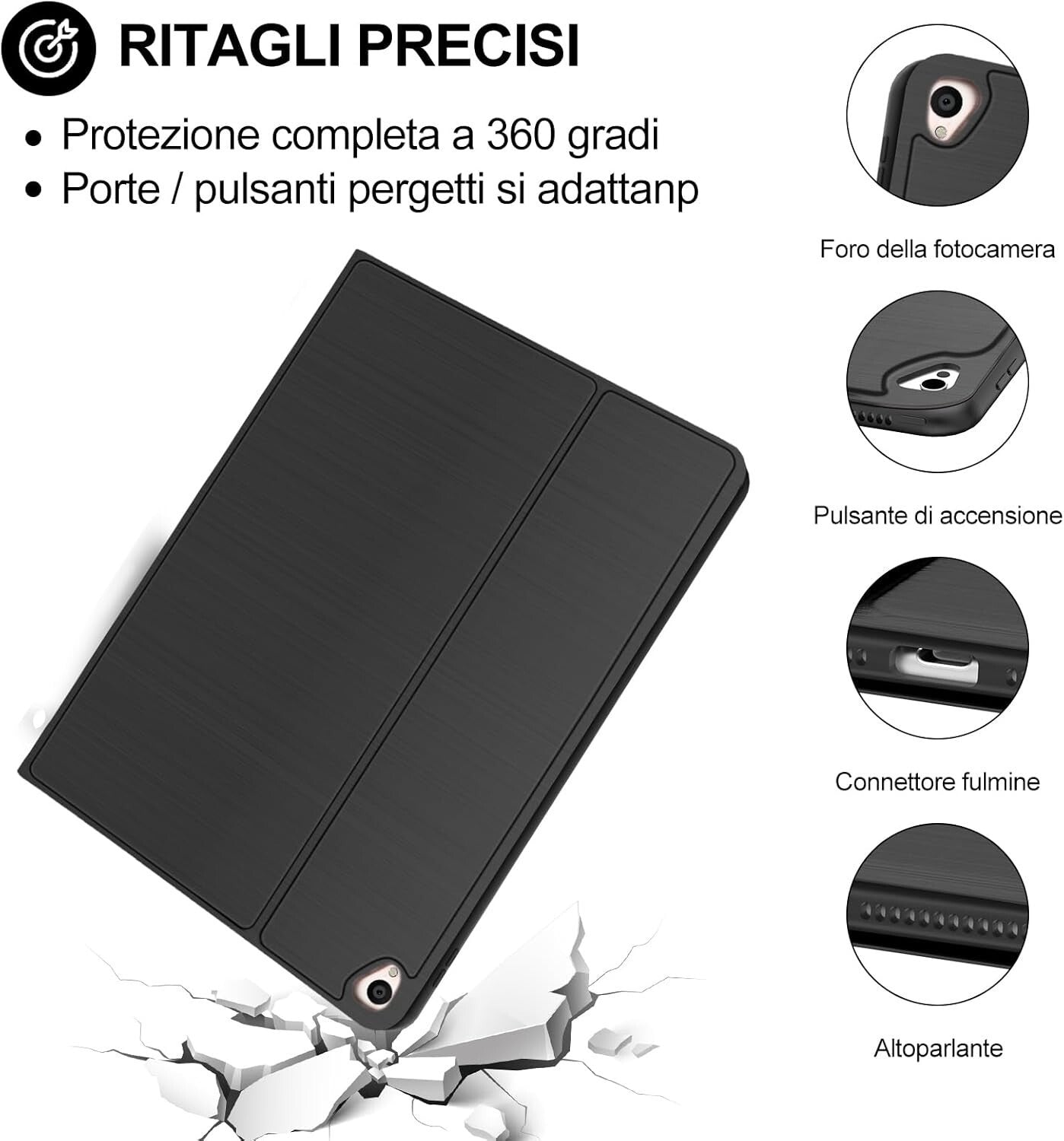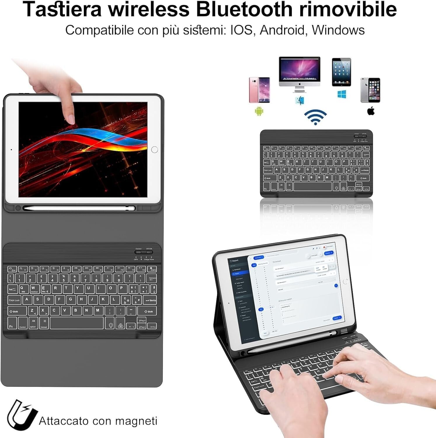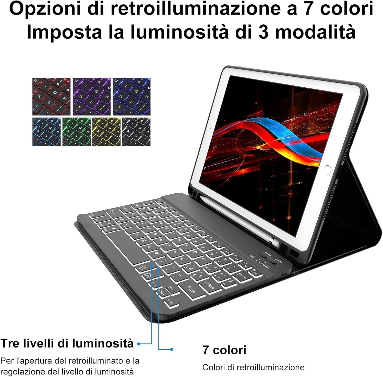 Tastiera per iPad 9a/8a/7a Generazione, per iPad 10.2" con Retroilluminazione, Cover con Tastiera per iPad Air 3, iPad Pro 10.5 Magnetica Staccabile Italiano QWERTY Layout, Nero