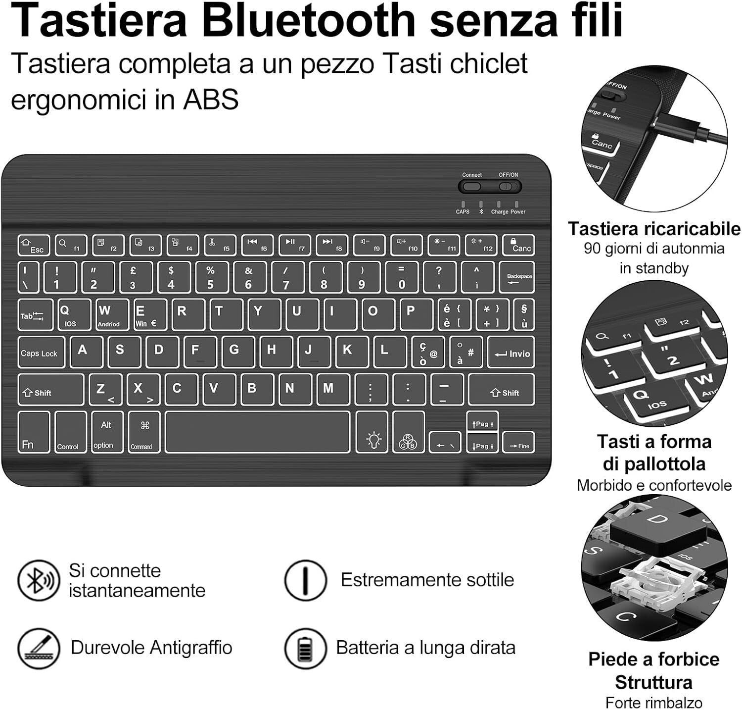 Cover e Tastiera per iPad 9a/8a/7a Generazione, per iPad 10.2" Retroilluminata