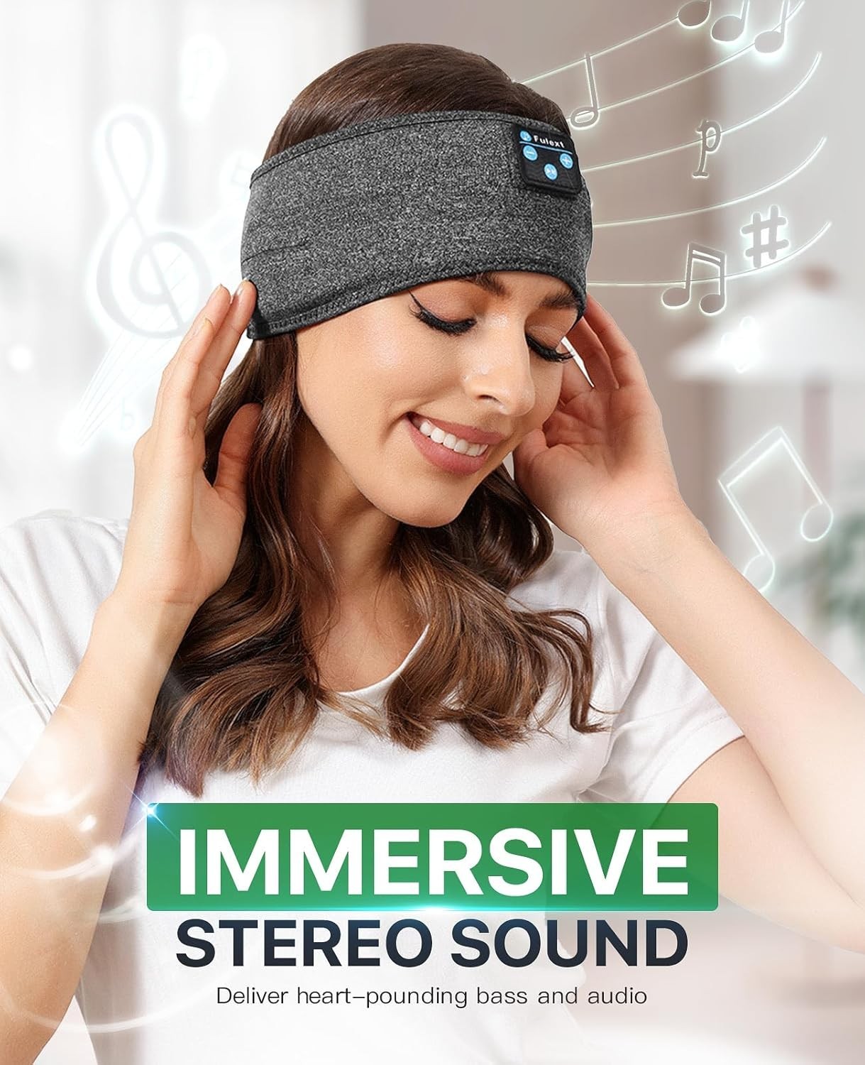 Audio HD Hi Fi e compatibile con Bluetooth: le cuffie Fulext Sleep integrate con altoparlante stereo e microfono offrono un suono digitale di alta qualità. Le cuffie Bluetooth per dormire offrono una portata fino a 13,7 m, le cuffie con fascia si collegano a qualsiasi telefono Bluetooth o dispositivo portatile. La maschera per dormire con cuffie Bluetooth non solo offre agli utenti un aspetto attraente ed elegante, ma offre anche una qualità del suono superiore durante il sonno, la corsa o la pratica dello yoga.