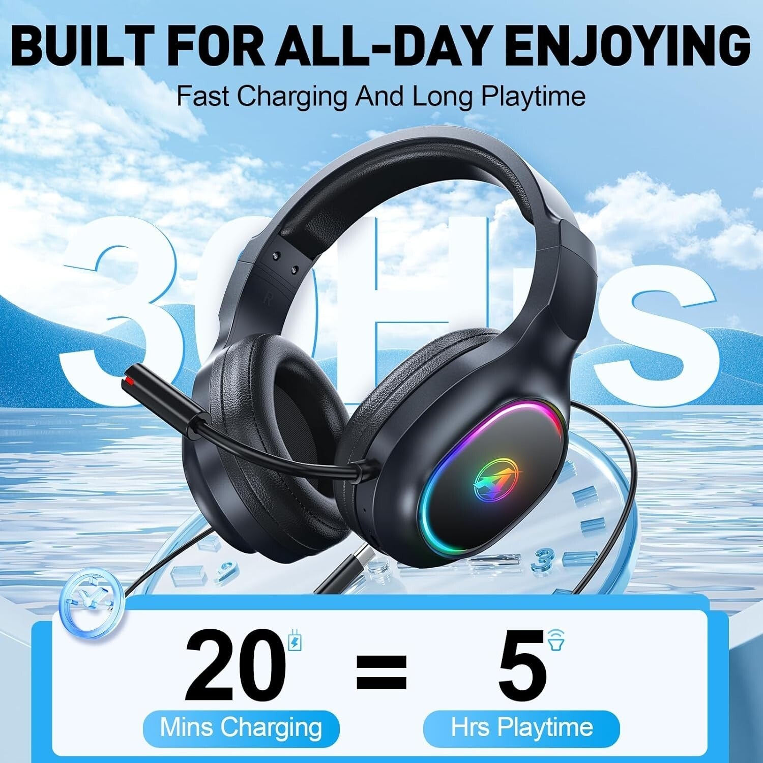 Microfono con riduzione del rumore rimovibile e luce RGB: il design rimovibile consente di rimuovere facilmente il microfono quando non in uso, garantendo un'esperienza di gioco senza pensieri. Le nostre cuffie da gioco con microfono offrono prestazioni migliorate grazie all'avanzata tecnologia di elaborazione per la riduzione del rumore. Eliminano efficacemente fino al 95% del rumore ambientale, garantendo una comunicazione chiara. Per migliorare l'ambiente di gioco, le nostre cuffie da gioco wireless sono dotate di una fantastica illuminazione RGB.