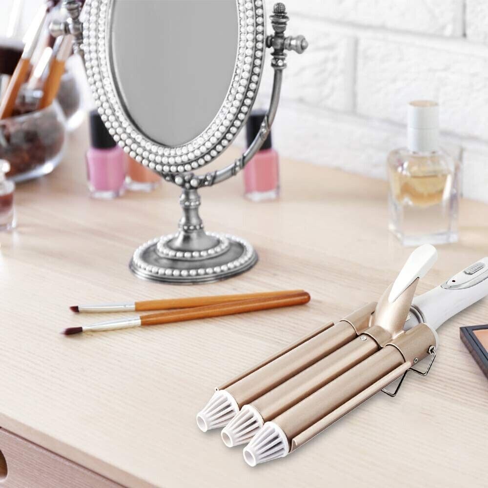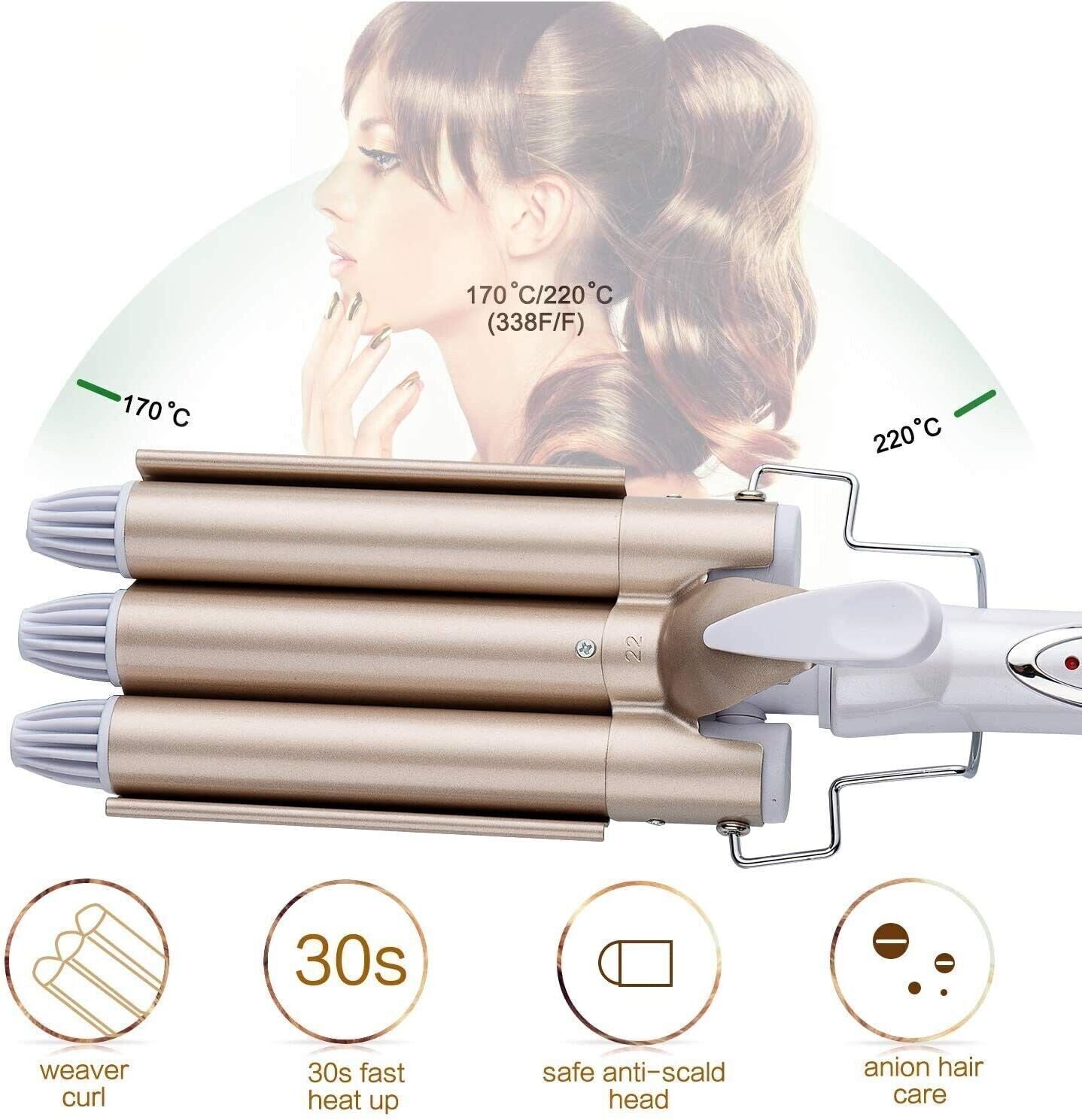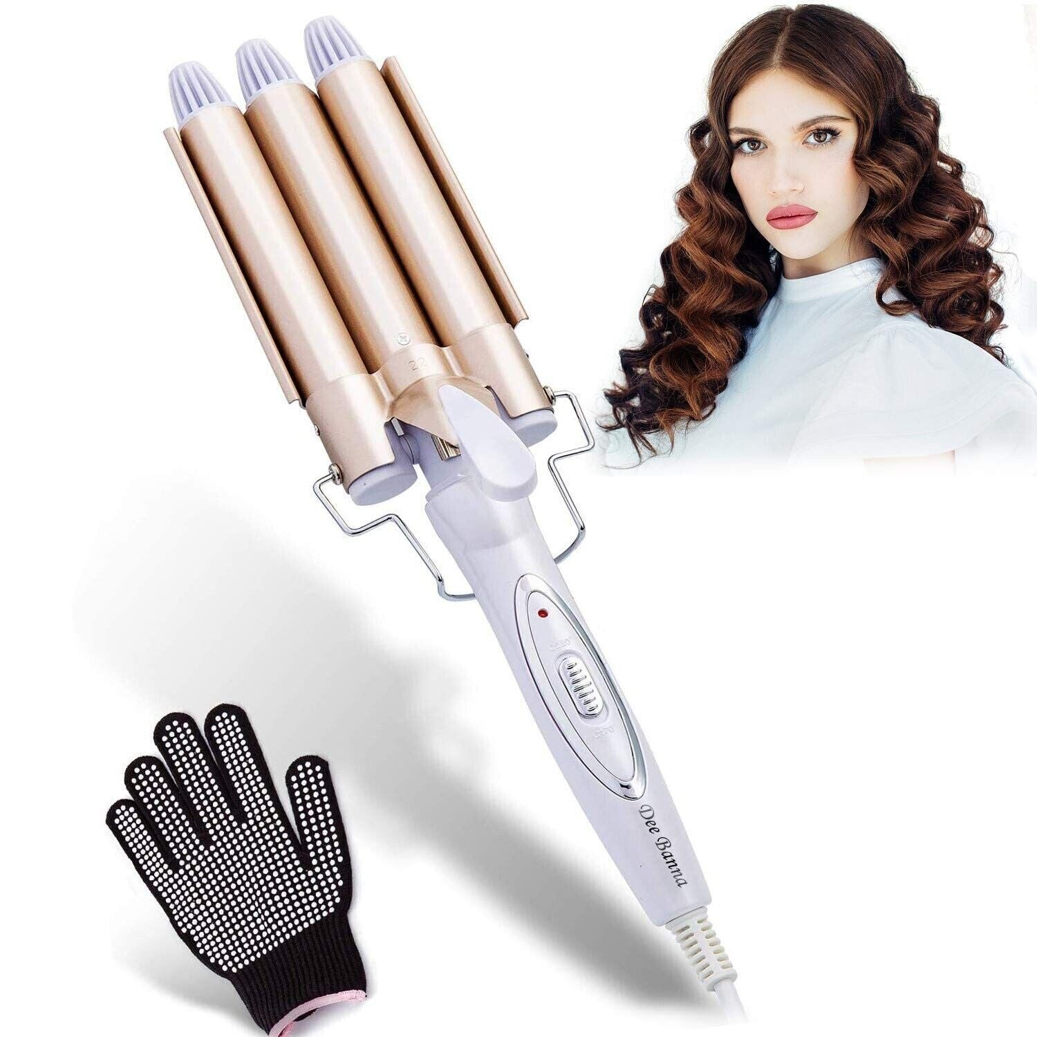 Dee Banna Bacchetta arricciacapelli per capelli con ferro arricciacapelli a 3 fusti, bacchetta per arricciacapelli riscaldante in ceramica pro tormalina, controllo della temperatura a due ingranaggi, miglior agitatore per onde senza crespo da spiaggia