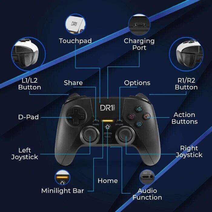 DR1TECH Shock Pad II Controller Wireless Compatibile con PS4/PS4 PRO, PC/WIN,