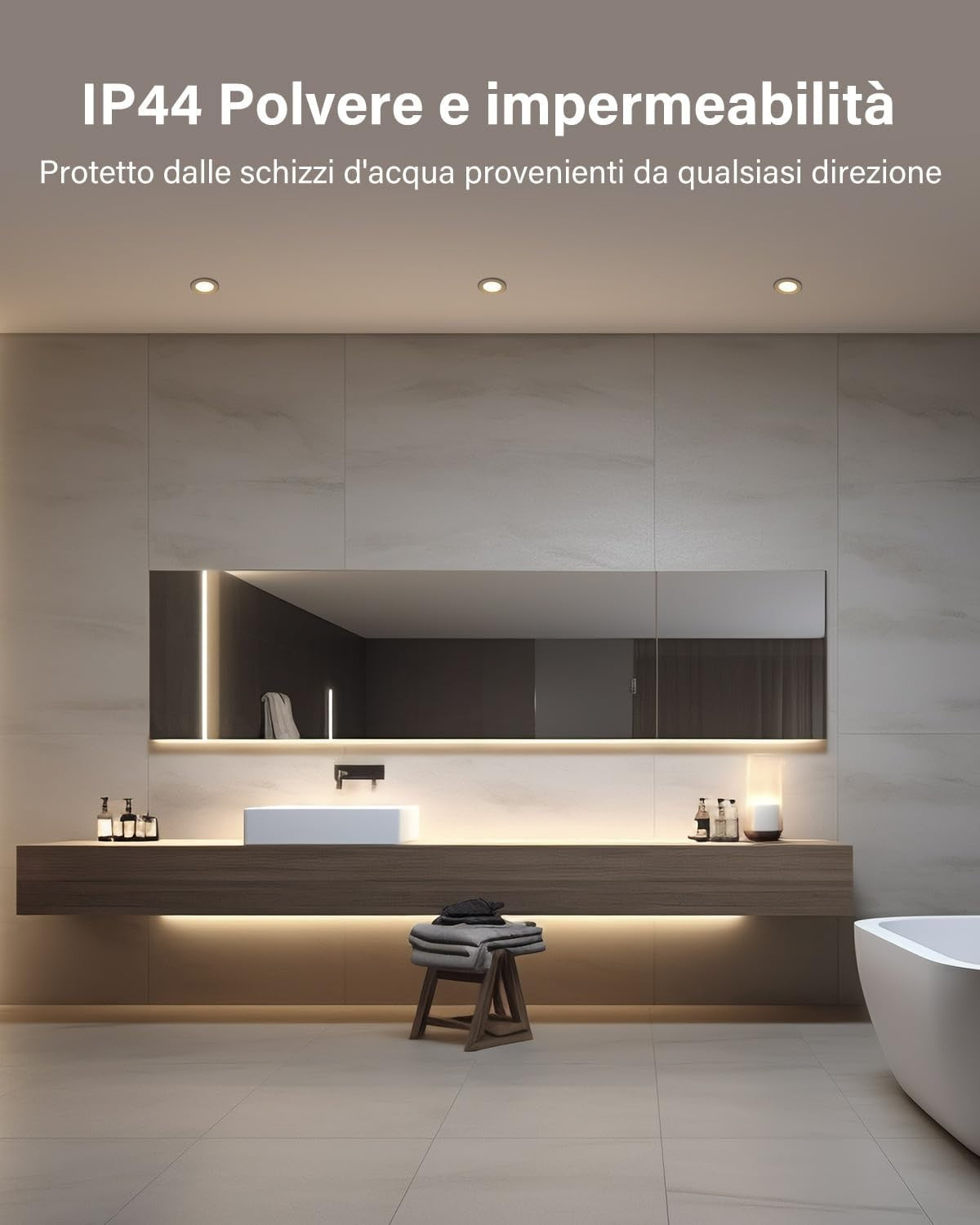 IP44 Impermeabile: Questi faretti da soffitto per il bagno hanno una classificazione IP44 impermeabile, rendendoli perfetti per l'installazione in bagno e in altre aree interne. Che si trovino in soggiorno, cucina, camera da letto, corridoio o spazi commerciali, persino in sale espositive, essi forniscono sia un'atmosfera calda e accogliente nelle aree residenziali che illuminazione professionale nelle aree commerciali.