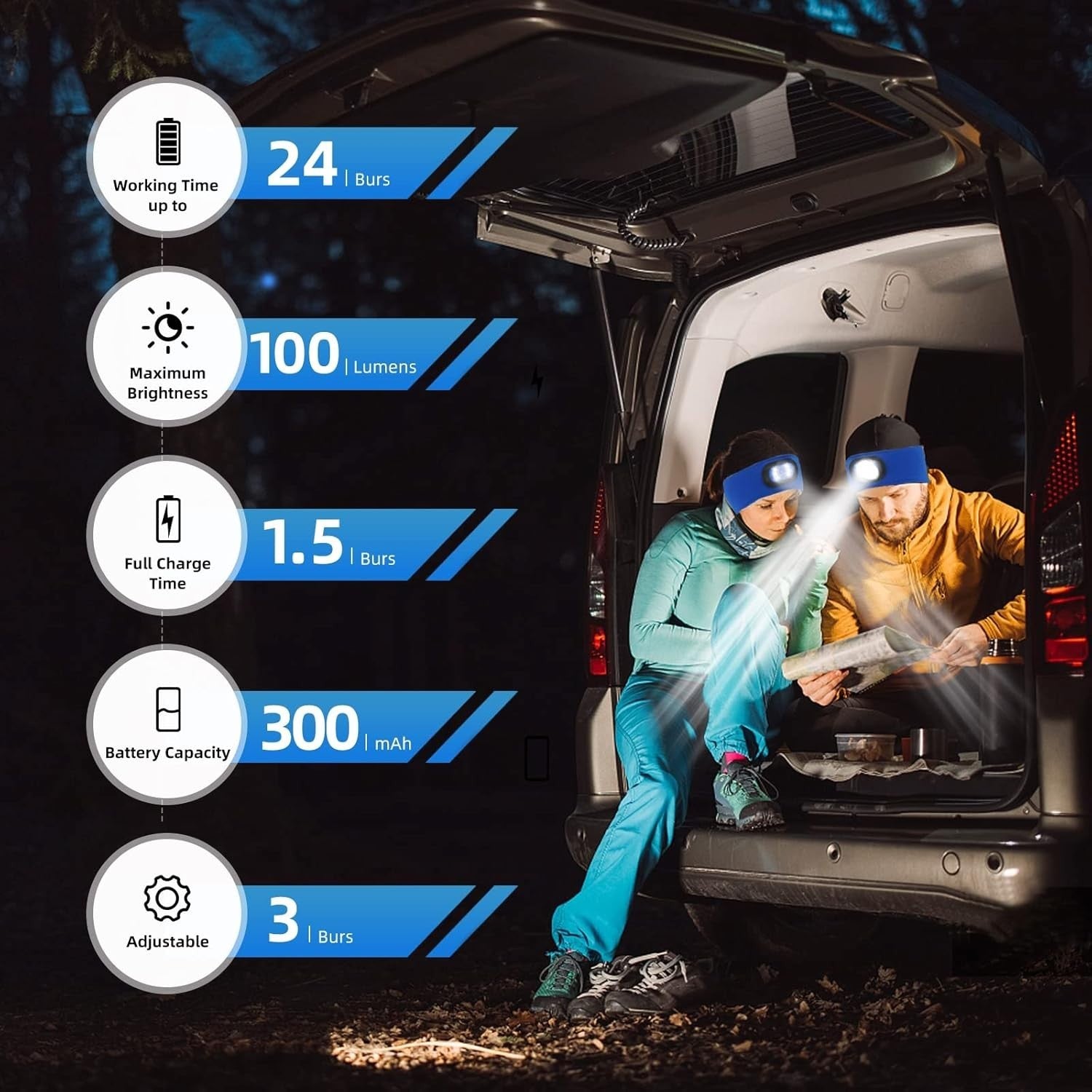 Fascia LED IVYWNT, lampada frontale ricaricabile tramite USB, 3 modalità di illuminazione, torcia frontale per corsa, caccia, campeggio, pesca, blu [classe energetica A].