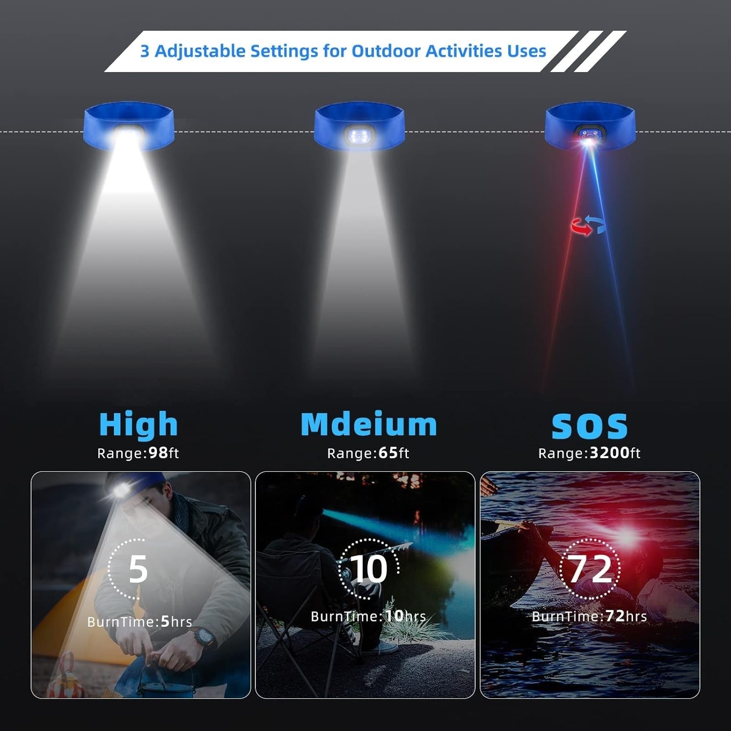 ILLUMINAZIONE INDOSSABILE E FUNZIONALE. Facile da cambiare tra 3 modalità, tra cui Alta (100 lumen), Media (80 lumen) e strobo blu-rosso appositamente progettato. La luce può essere estratta e utilizzata come una mini torcia. Lo stato di bassa potenza viene segnalato da 7 lampeggi bianchi, il che facilita l'organizzazione dell'attività. Le 6 lampadine super luminose aggiornate forniscono una luminosità adeguata e di lunga durata. Lo strobo blu-rosso aggiuntivo dura fino a 74 ore e ti fa rimanere v