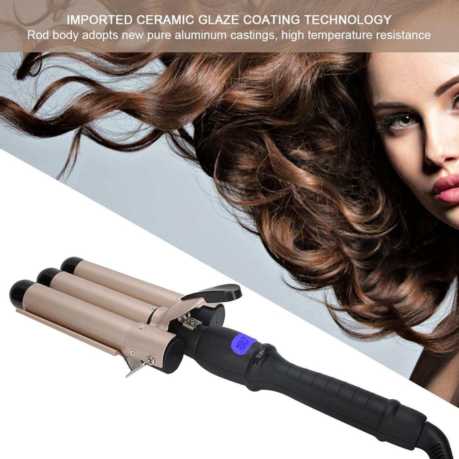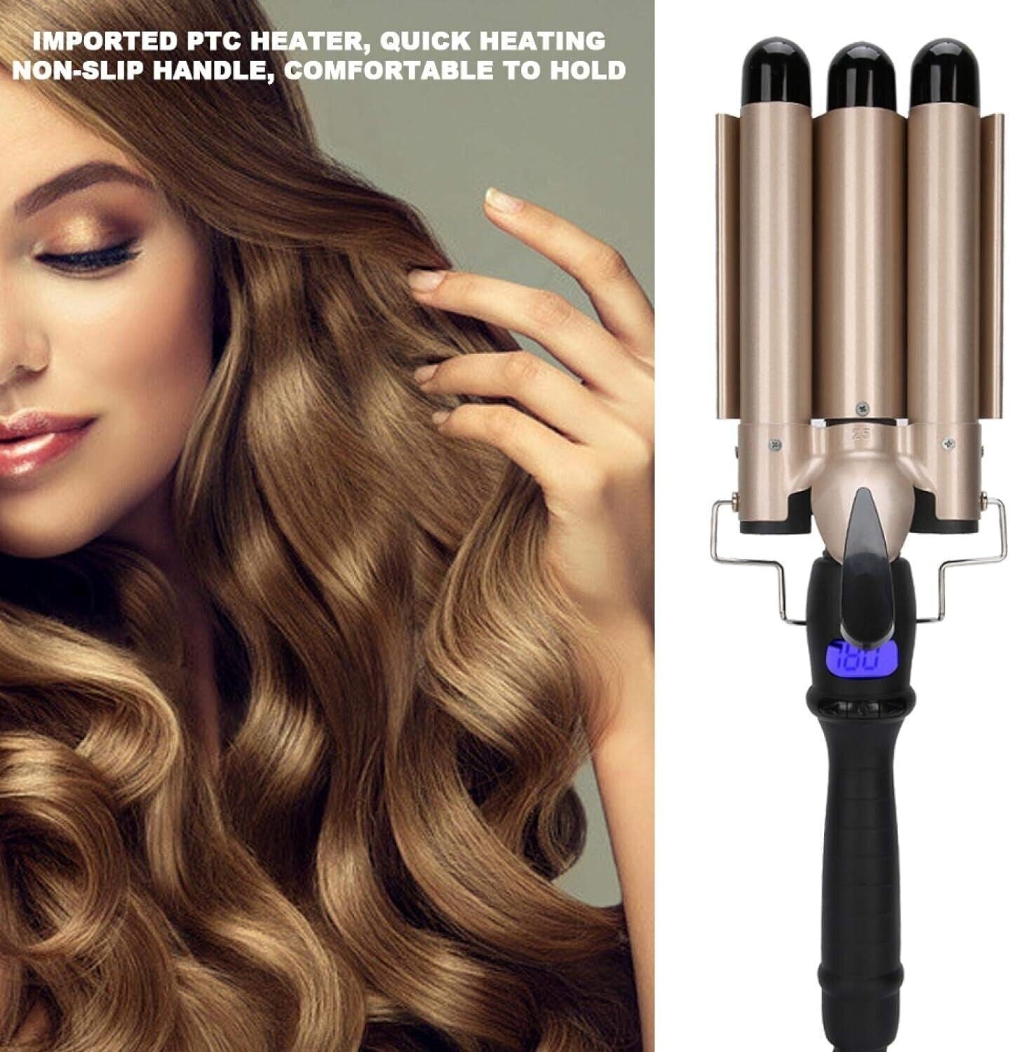 Adatto A Tutti I Tipi Di Capelli: Indipendentemente dai capelli lunghi o corti, lo spessore e lo spessore dei capelli possono ottenere risultati eccellenti e puoi cambiare l'acconciatura in base alle tue esigenze. Ceramica smalto 3 ferro arricciacapelli pesante con cura dei capelli a ioni negativi. Arriccia i capelli velocemente, crea un'acconciatura squisita e ti fa sembrare alla moda.