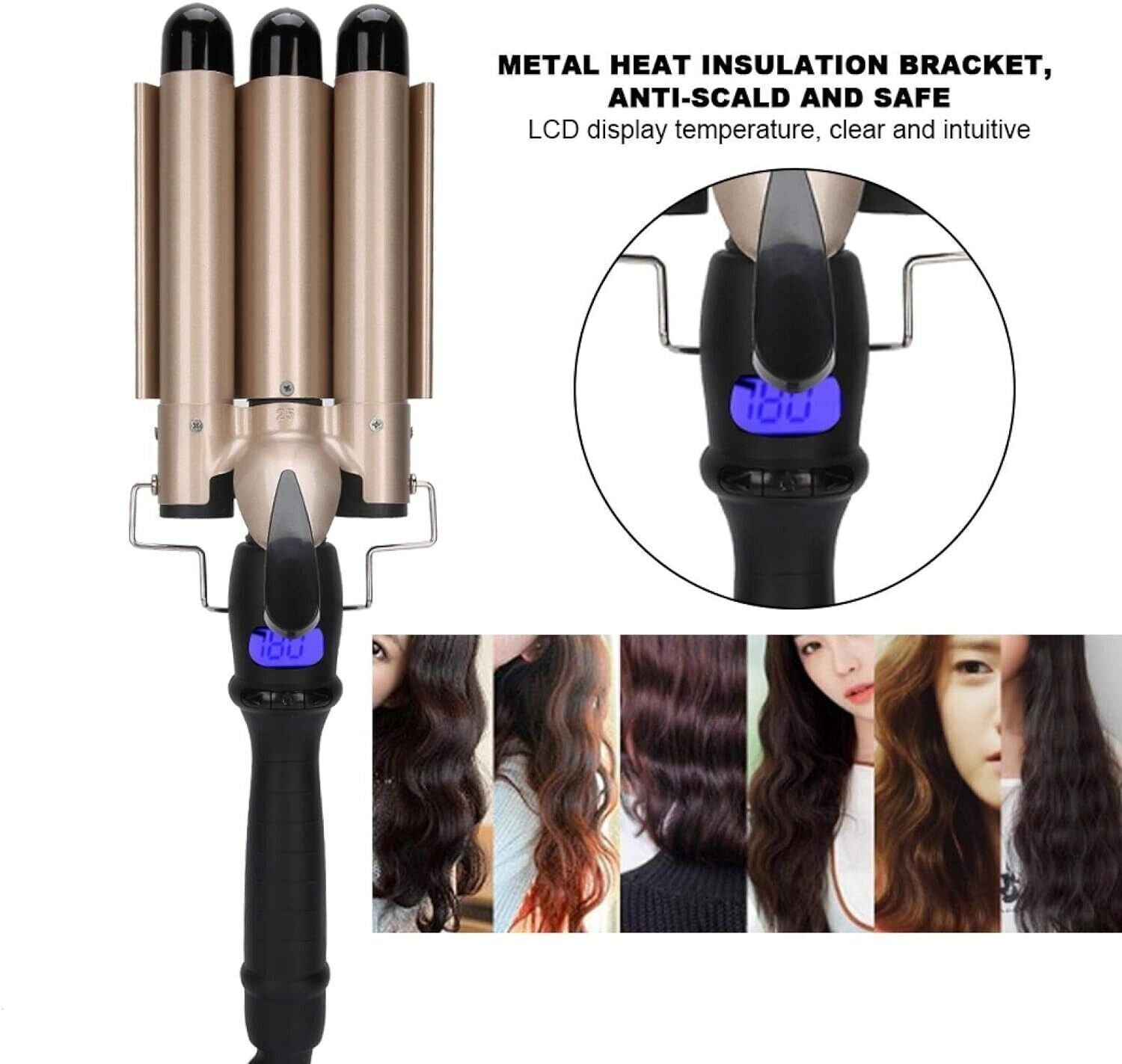 Sicurezza E Isolamento Termico: Il ferro arricciacapelli è anche con staffa di isolamento termico in metallo, antiscottatura e sicura, temperatura del display LCD, chiara e intuitiva. Il triplo ferro arricciacapelli ha una testina di isolamento di sicurezza, che ti consente di creare il tuo stile di capelli in modo molto sicuro.