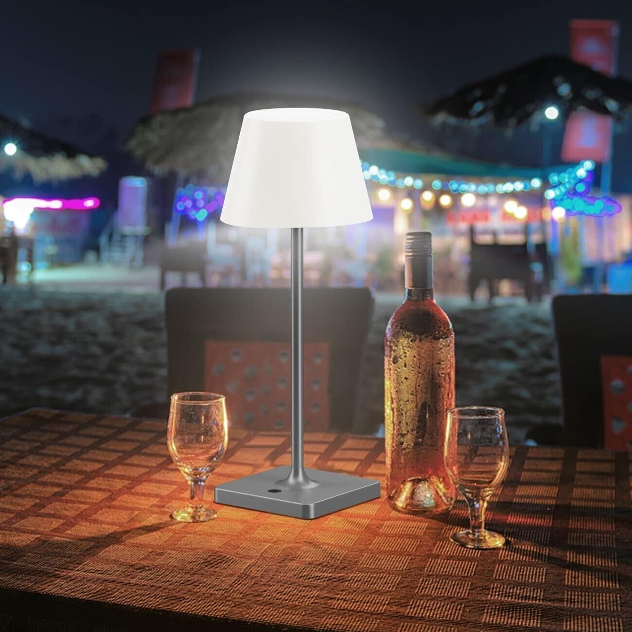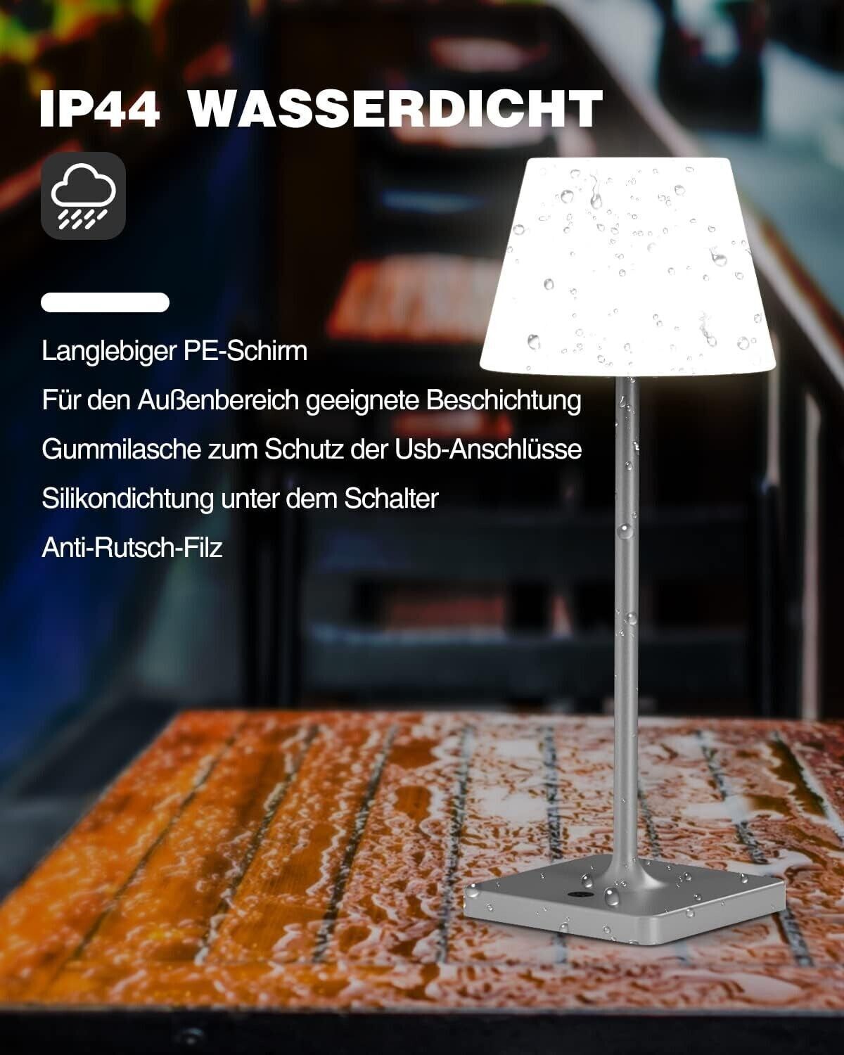 FRAPOW Lampada da tavolo senza fili - Ricaricabile LED Eye-Protect Lampada da Tavolo - 4000mAh Batteria - Corpo in Alluminio - IP44 Uso Interno ed Esterno - Grigio [Classe di efficienza energetica G]