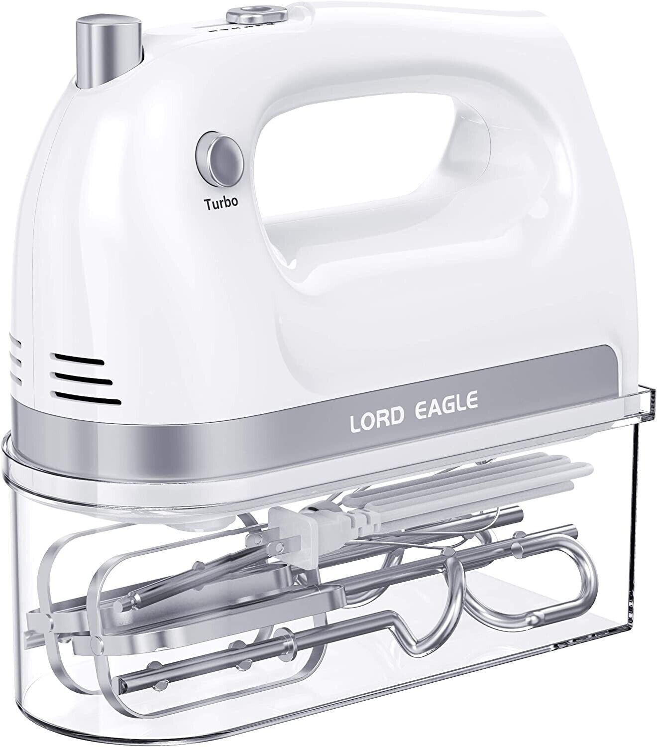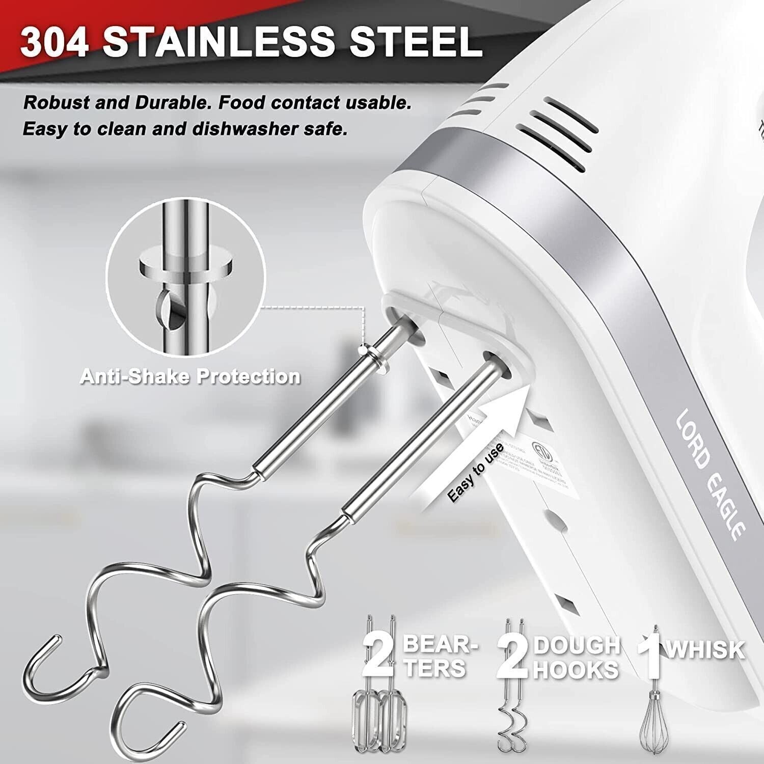 Lord Eagle Frullatore a mano, 300 W, frullatore elettrico per preparare torte, crema per uova, boost + 5 marce + pulsante di espulsione + 5 acciaio inox (With Box)