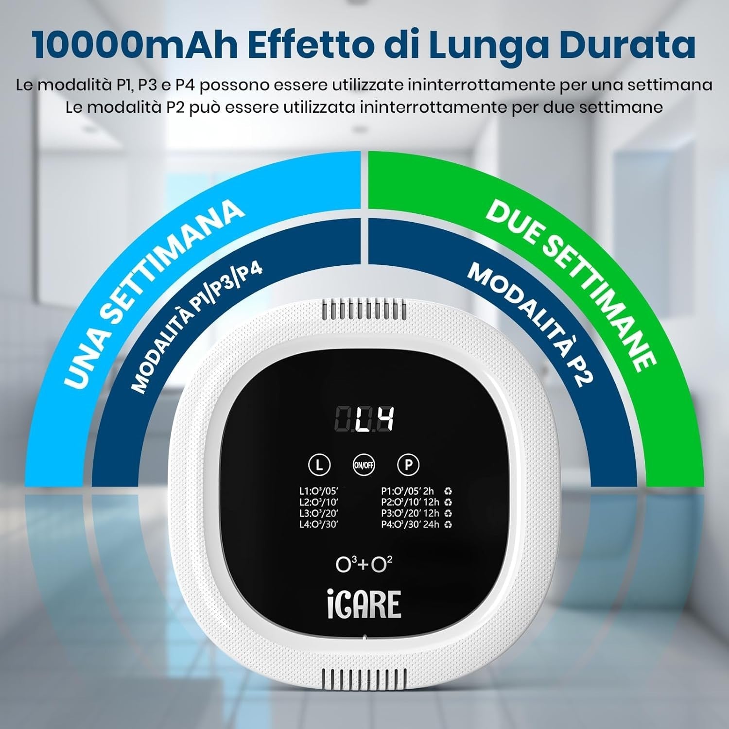 Generatore Di Ozono Purificatore D'Aria, 10000 Mah Ricaricabile Mini Purificator