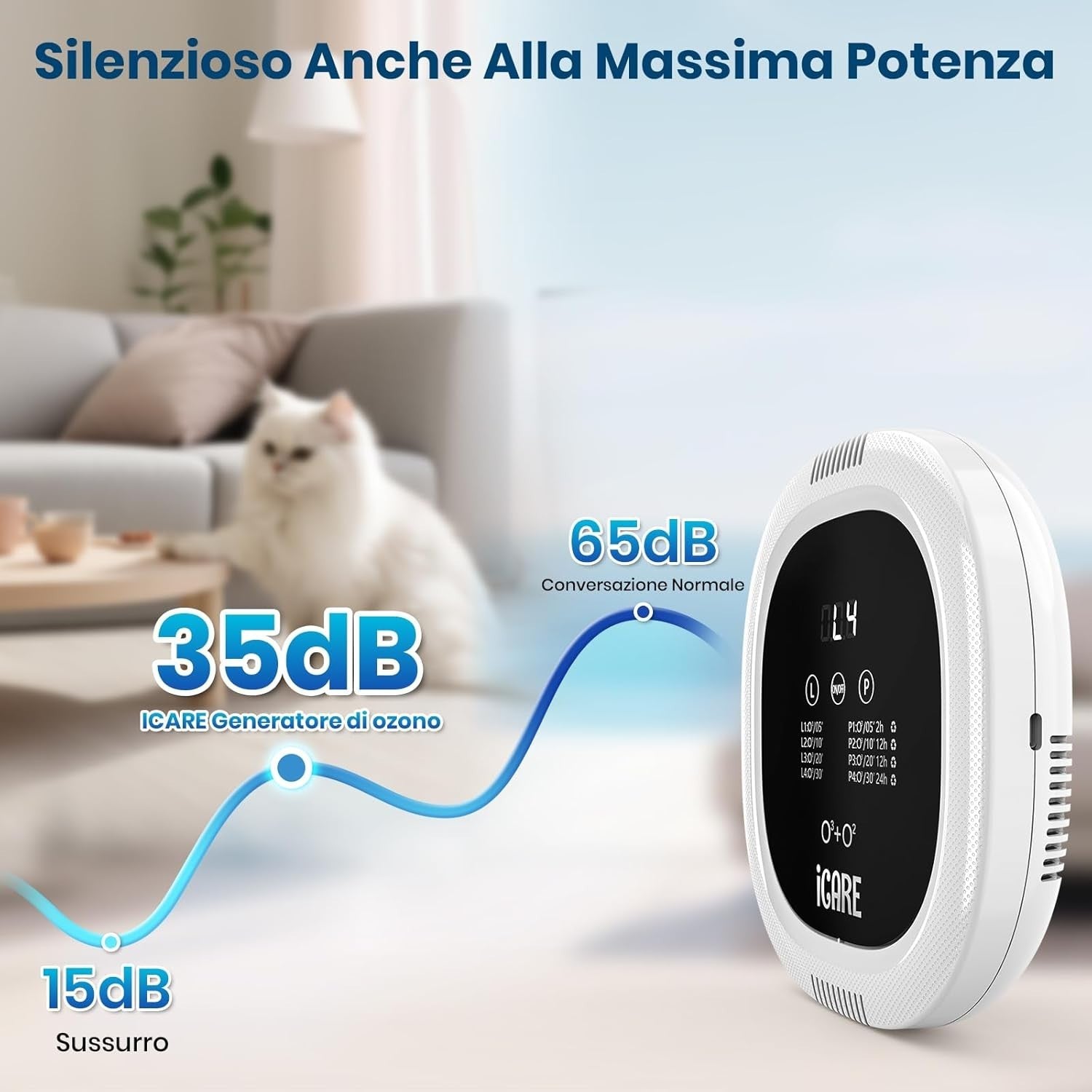 Design Silenzioso: Il generatore ozono ha un design a bassa rumorosità, con una valutazione del rumore di soli 35 dB. Durante il funzionamento, il generatore di ozonizzazione dell'aria rimane silenzioso e non produce un rumore eccessivo, consentendo agli utenti di godere di un ambiente tranquillo durante l'uso. Questo garantisce un'esperienza di utilizzo più confortevole in situazioni in cui è necessario un funzionamento a lungo termine