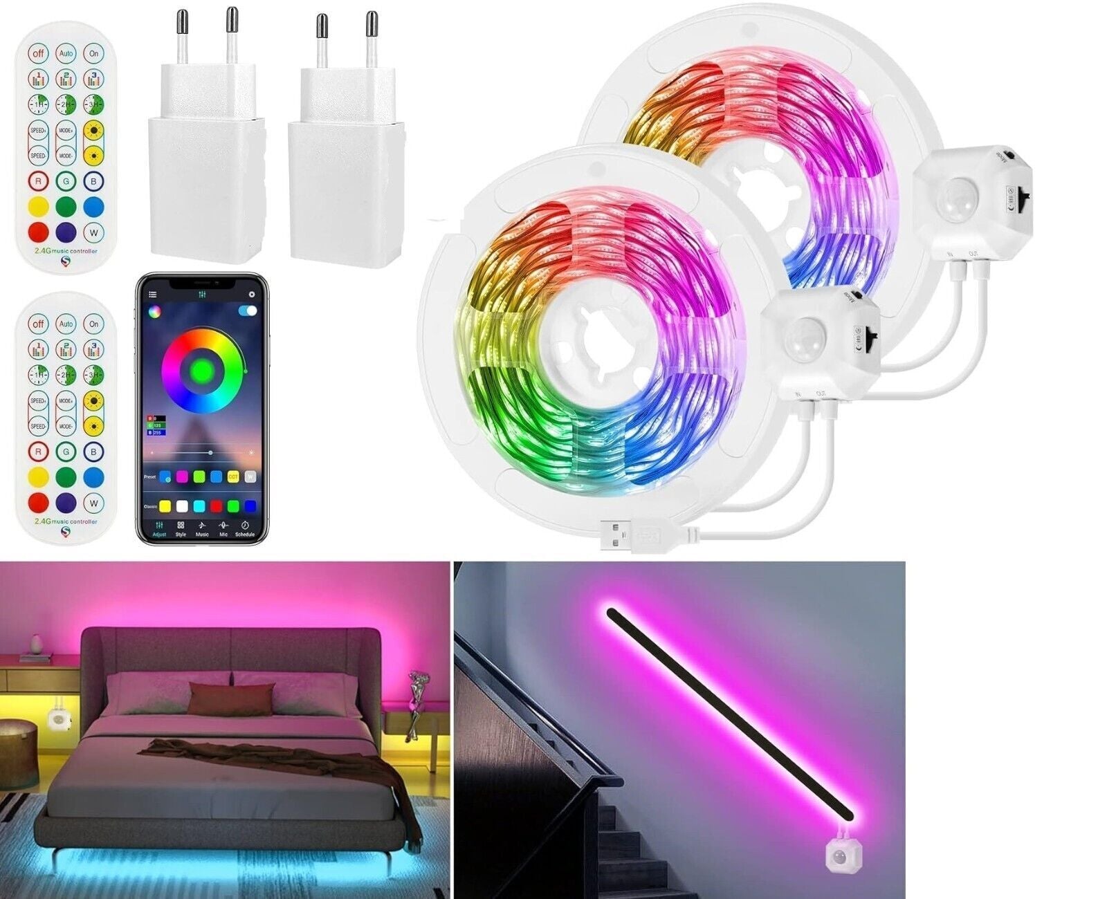 HOUHUI Striscia LED 3M, Luci Led con Sensore di Movimento PIR,USB LED Striscia, Controllo APP Striscia Luminosa Attivata dal Movimento, RGB LED Notturna con Rilevatore di Movimento per Letto, Scale, Armadietto