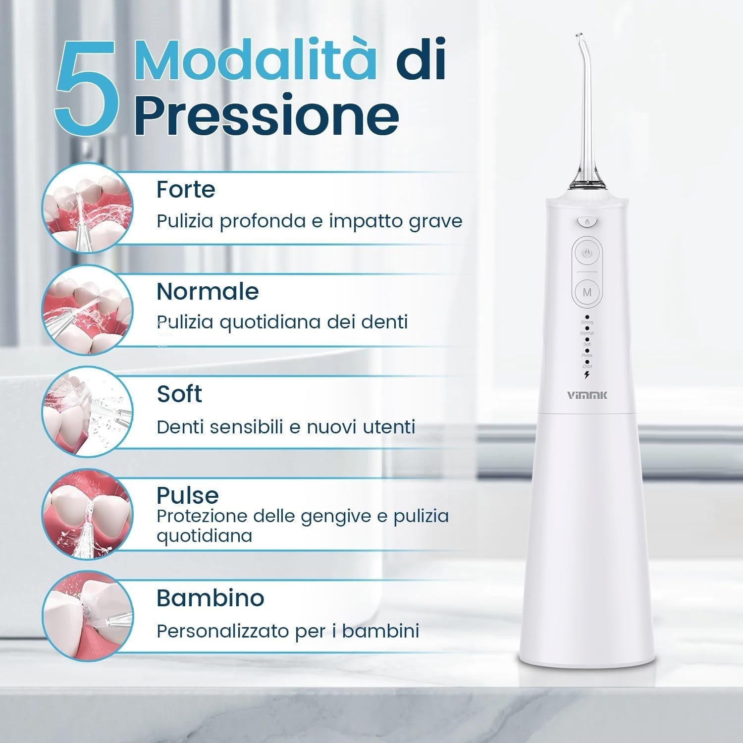 Irrigatore orale wireless Vimmk, idropulsore dentale con irrigatore orale ricaricabile IPX7 impermeabile per viaggi a casa (bianco).