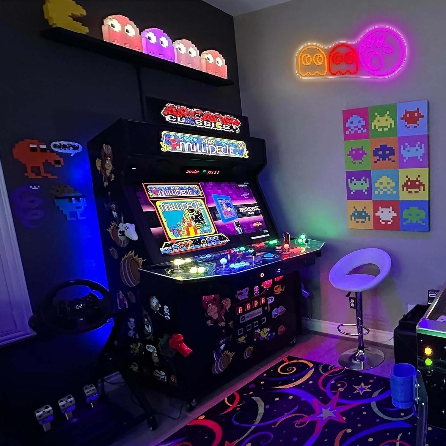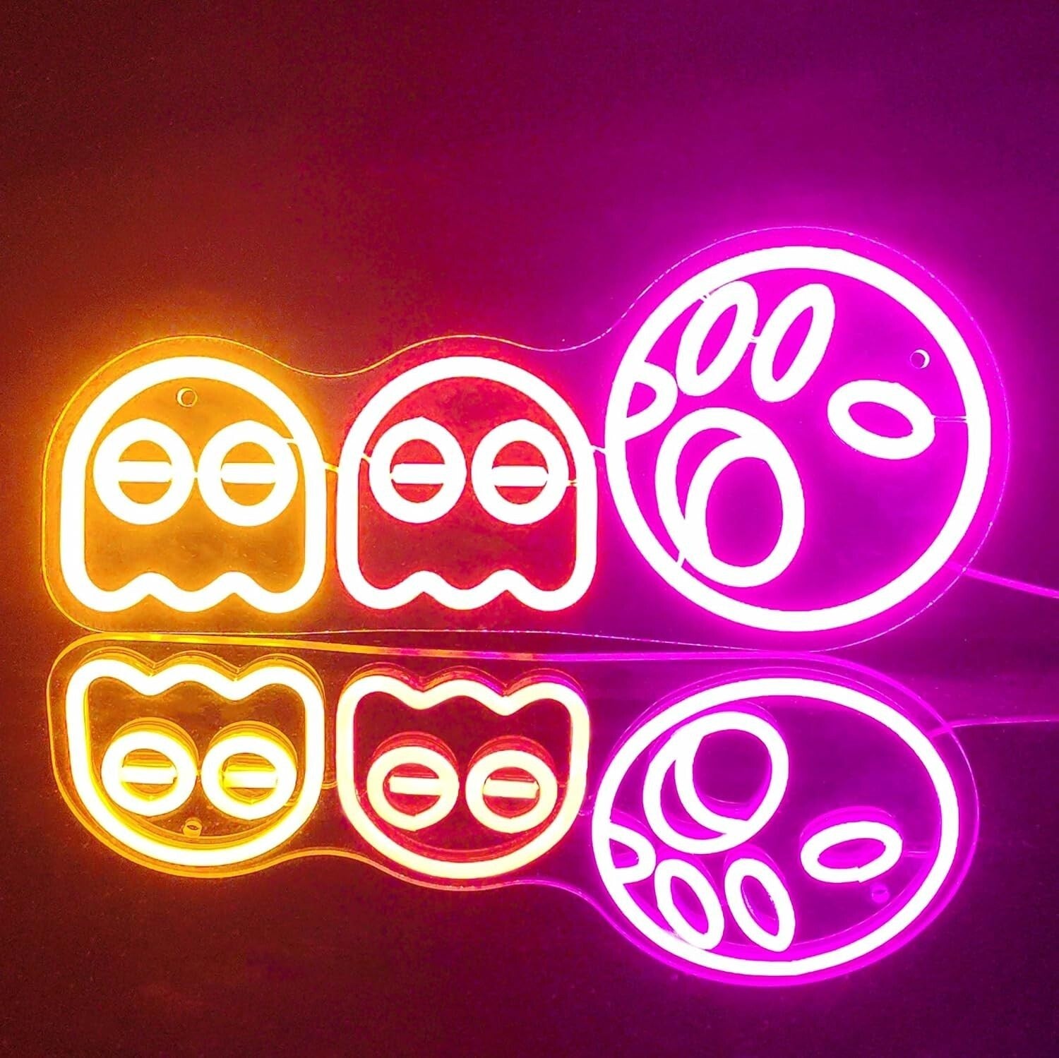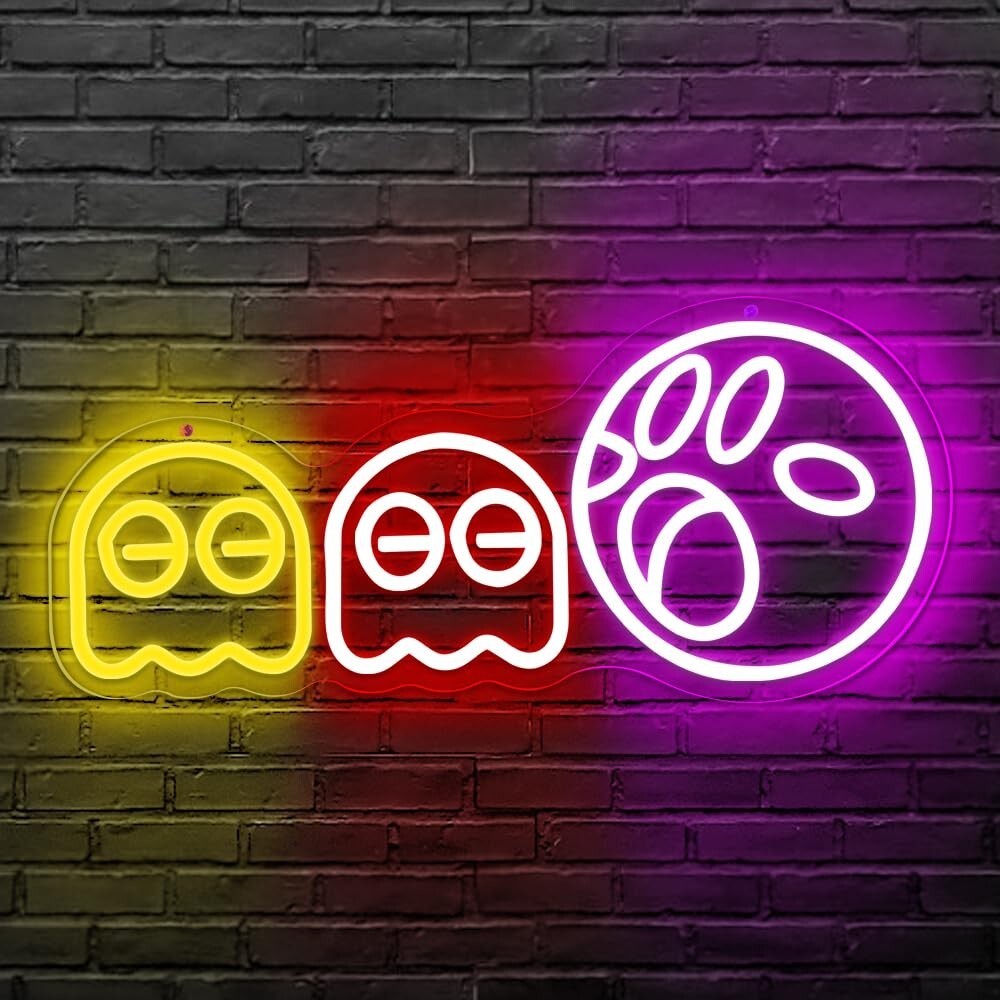 CARINO, ALLA MODA E LUMINOSO: l'ispirazione per il design delle insegne al neon fantasma deriva dal famoso gioco arcade. Il divertente design dei cartoni animati assicura che il tuo bambino ne sarà affascinato. Le luci al neon fantasma emanano una calda luce rossa, rosa, blu e gialla, una meravigliosa decorazione per la stanza dei fantasmi al neon per sostituire la noiosa lampada da scrivania e aggiungere colore alla sala giochi del ragazzo