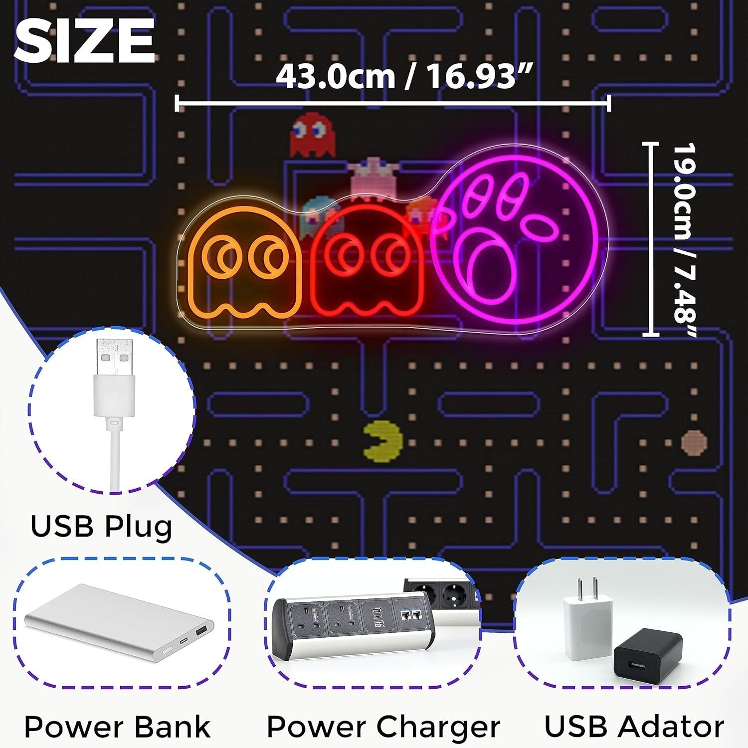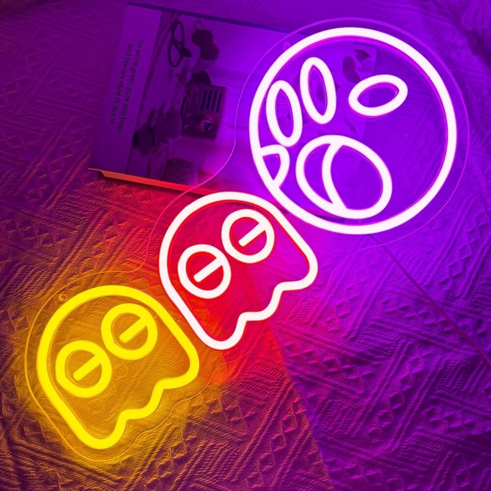 AMPIA APPLICAZIONE: le insegne al neon fantasma per decorazioni murali sono un'attrazione ideale per l'arredamento della tua casa o per le tue feste. Le insegne al neon a LED fantasma sono adatte per decorare sale giochi, camere da letto, soggiorni, sale giochi arcade, uffici, bar, feste, negozi, librerie, balconi e hotel a tema gioco. Rendi la vita semplice più colorata e interessante. Illumina la tua festa.