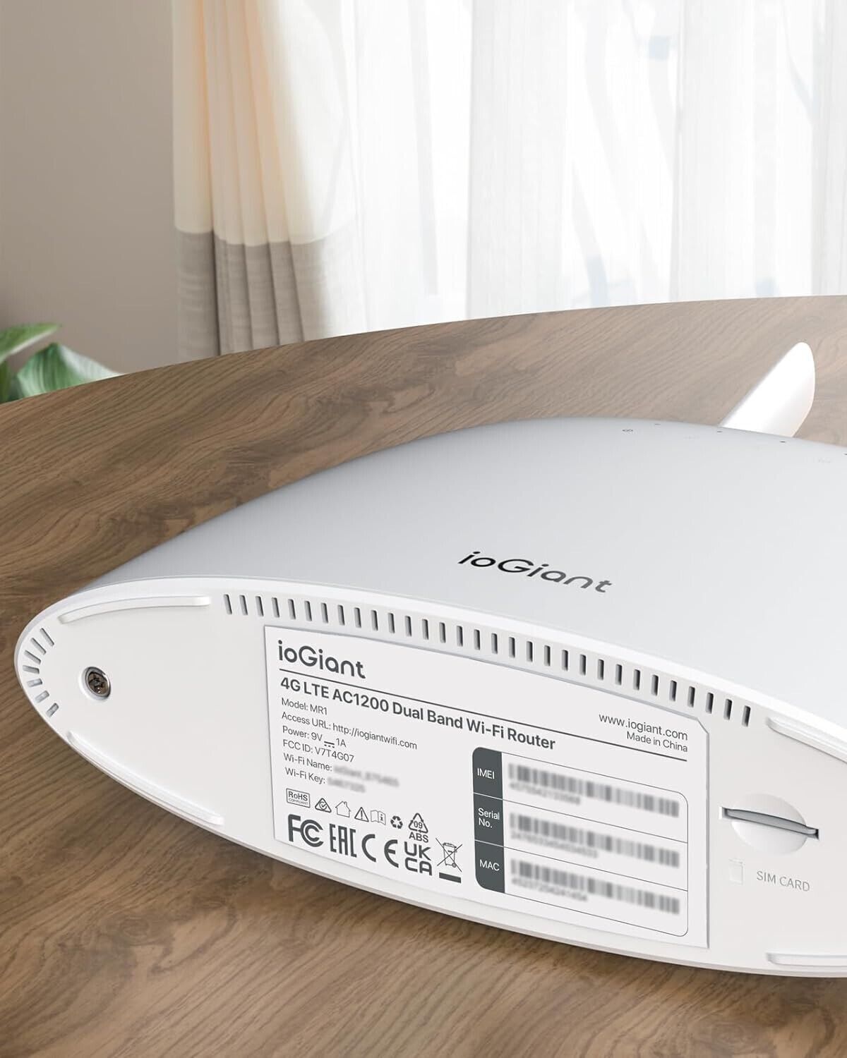 ioGiant Router 4G LTE con Sim, AC1200 Wi-Fi Dual-Band, Senza configurazione, Porta LAN/WAN, Connettività Fino a 64 Dispositivi, Antenne Staccabile, modem 4G Sim