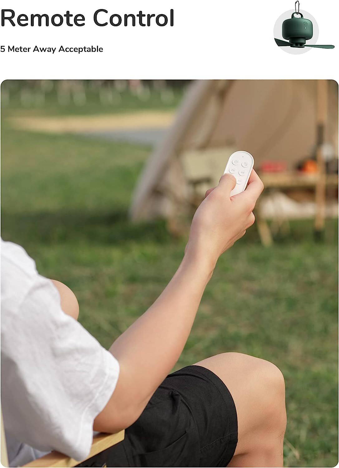 Telecomando e funzione timer: Questo ventilatore da campeggio a batteria è dotato di telecomando, che consente di regolare facilmente l'ingranaggio della velocità del vento, il timer quando si è sdraiati sul letto del dormitorio o nella tenda. Fornisce un potente flusso d'aria per rinfrescarti dal sudore. Inoltre, ci sono 4 modalità timer per l'opzione: 2/4/6/8 ore.